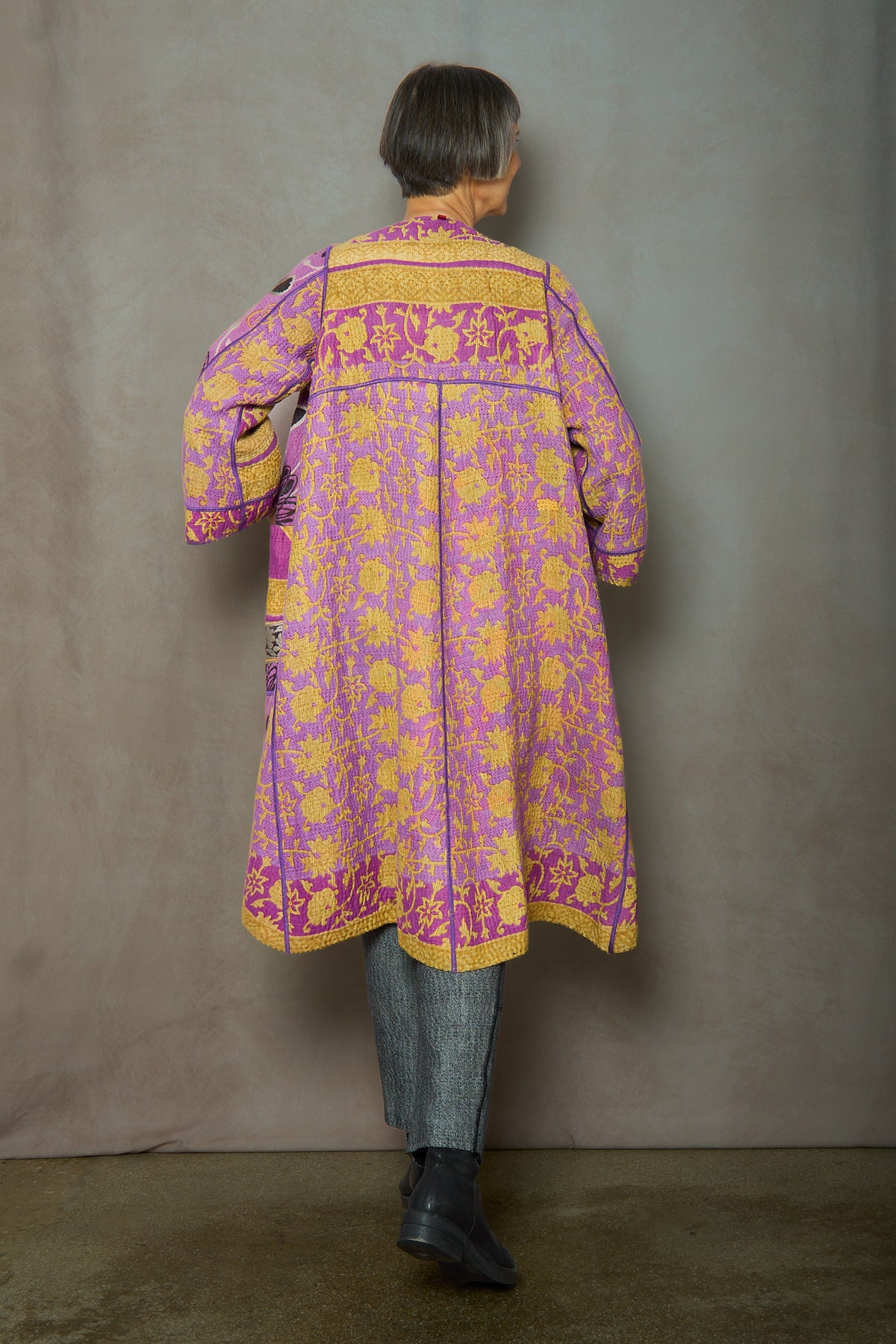 VINTAGE COTTON KANTHA WRAP FLARE COAT