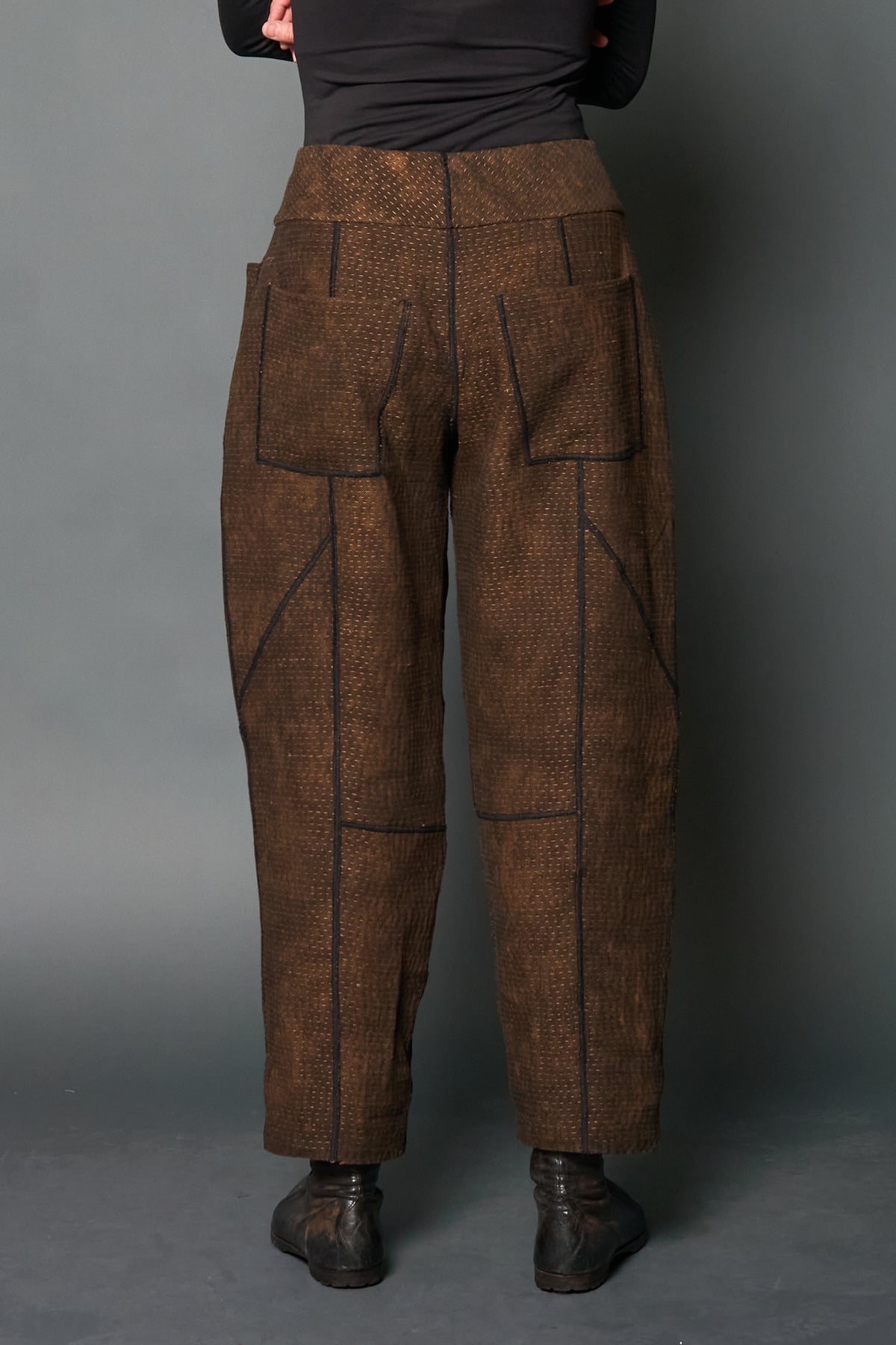 DENIM SUN-DYE KANTHA PANELED LANTERN PANTS