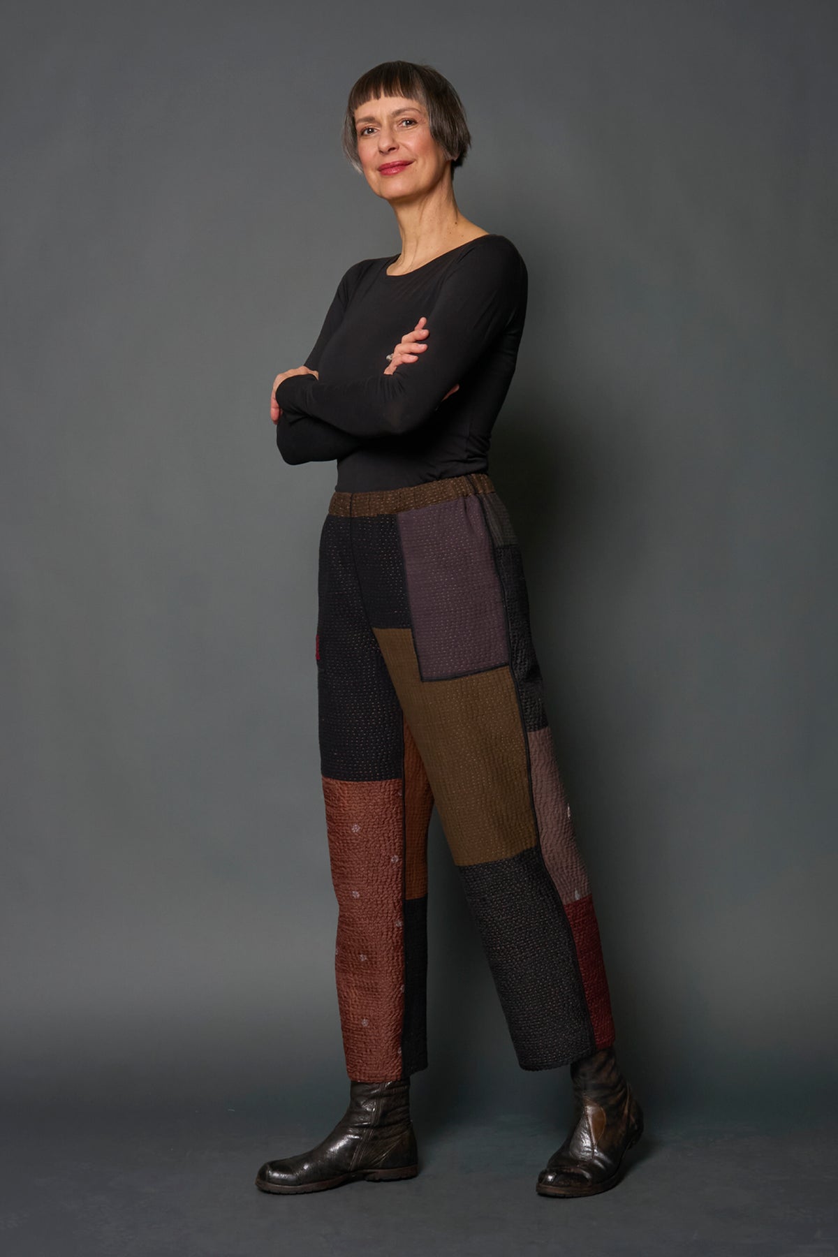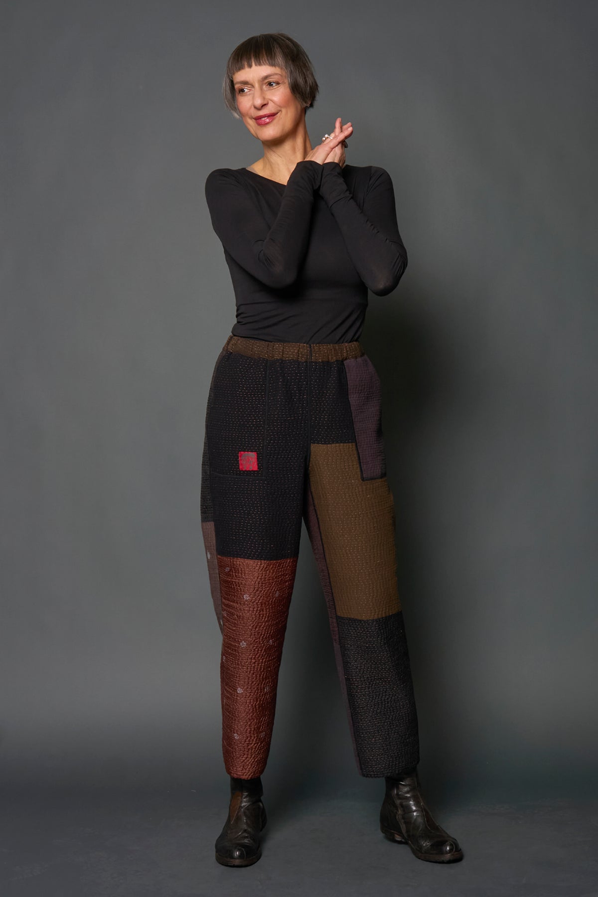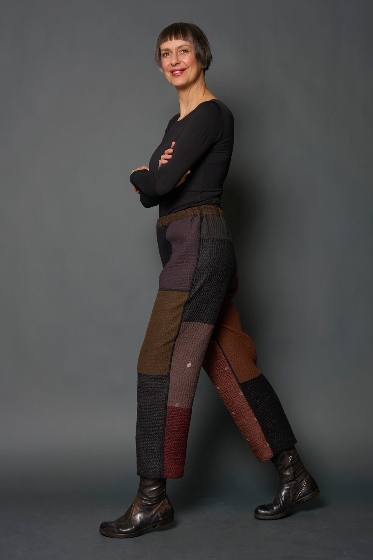 DENIM SUN-DYE KANTHA STRAIGHT PANTS - ds3664-brn -