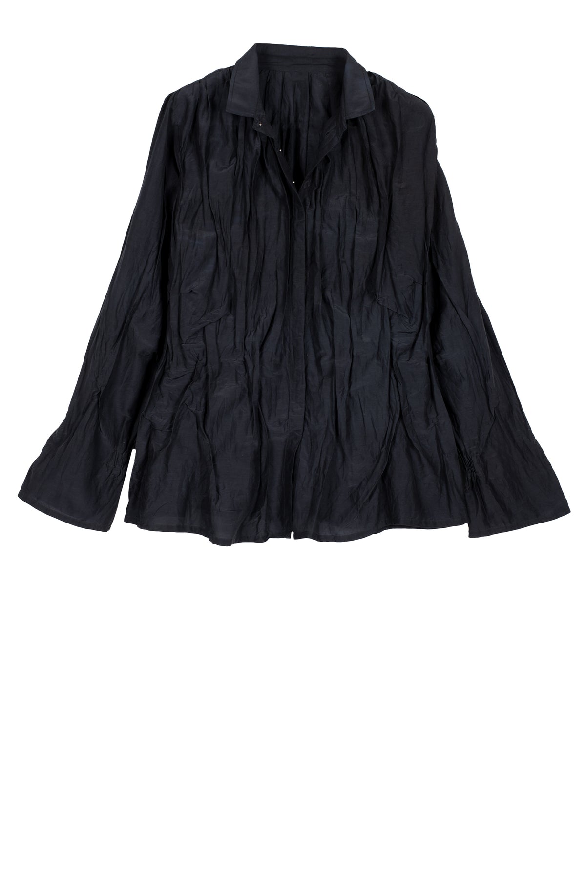 DYED COTTON SILK VOILE WAVY TUCKED MEN'S SHIRT