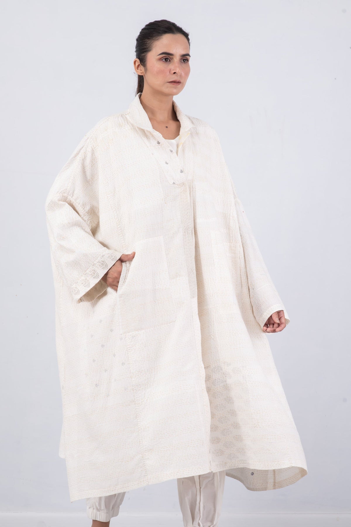 Use a delicate care detergent in cold water without soaking, as this might release some dye. Press and wash without rubbing. Rinse the Kantha garment without wringing.