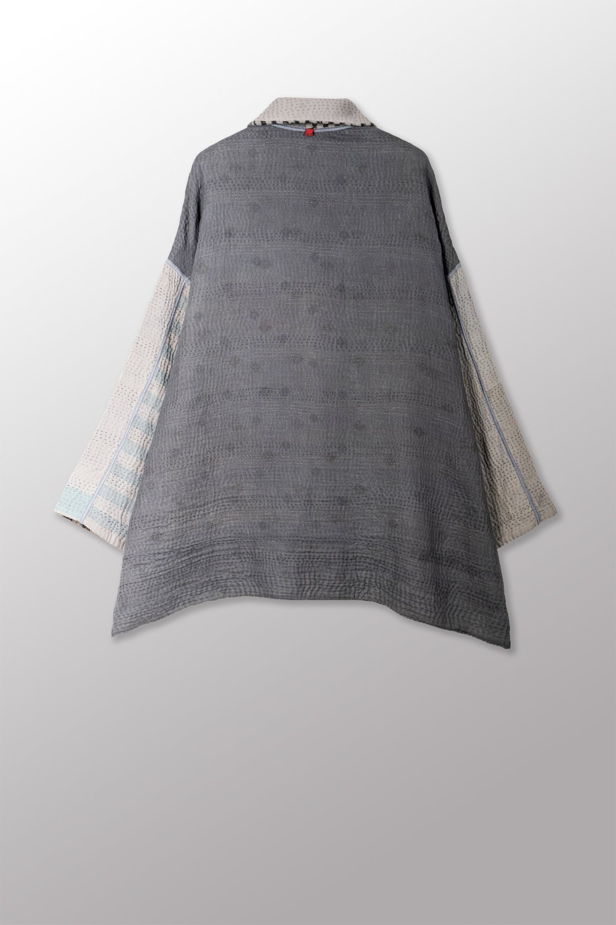 FRAYED PATCH KANTHA WITH STAMP OVERSIZED MINI COAT