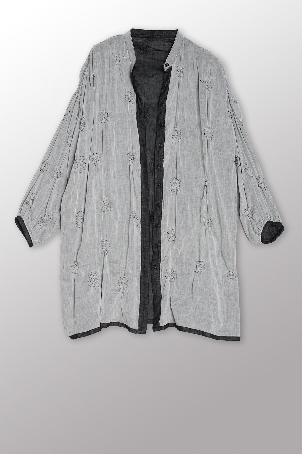 GAUZE SHIBORI GARMENT KANTHA BAND COLLAR OVERSIZED SHIRT