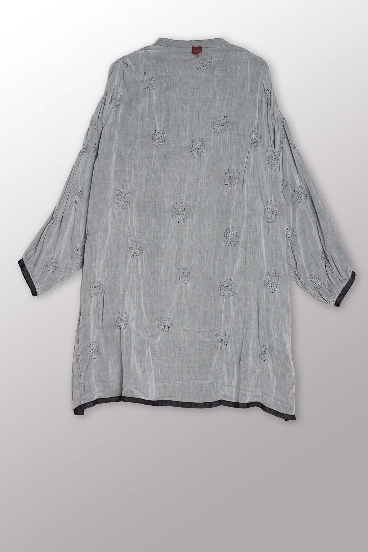 Use a delicate care detergent in cold water without soaking, as this might release some dye. Press and wash without rubbing. Rinse the Kantha garment without wringing.
