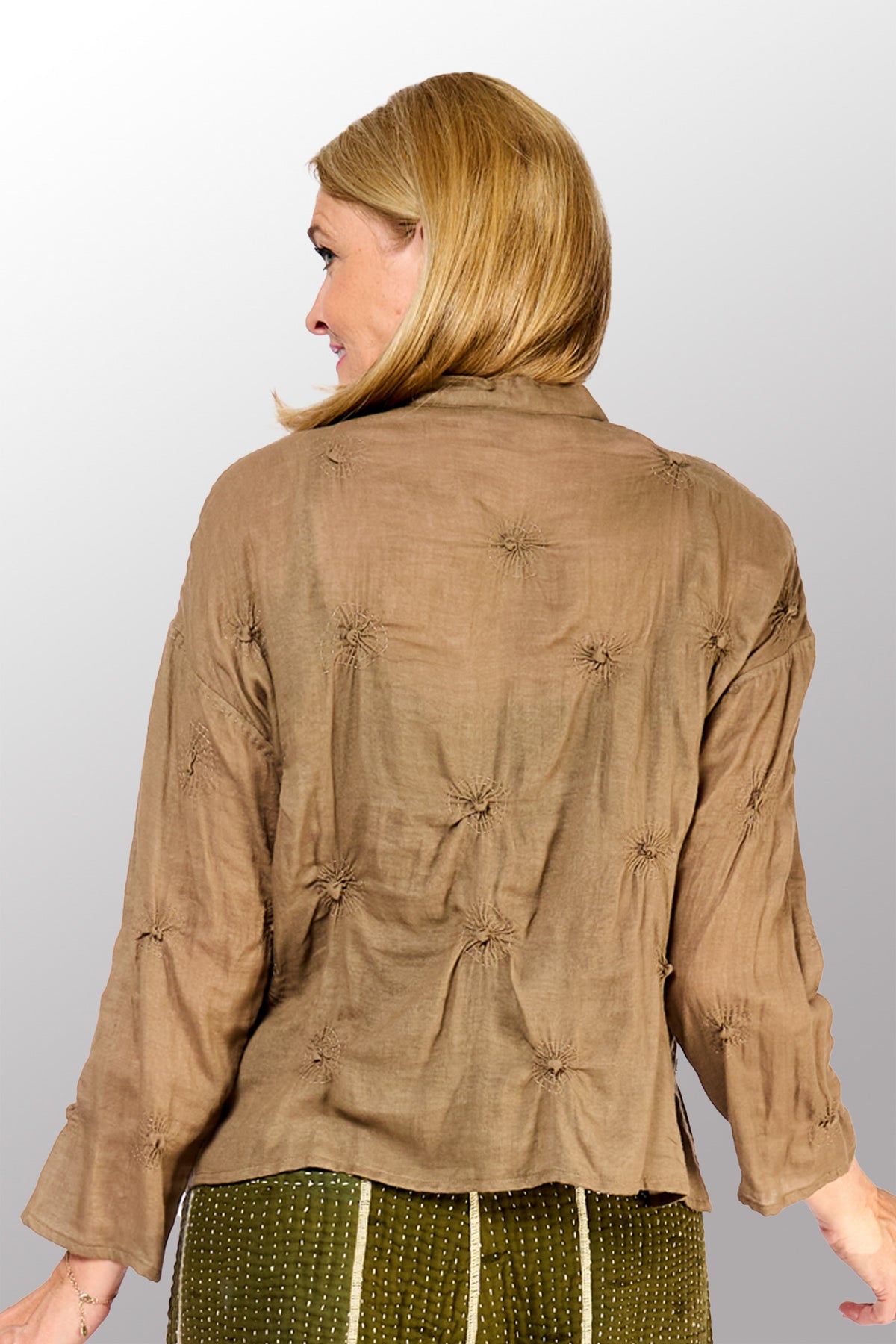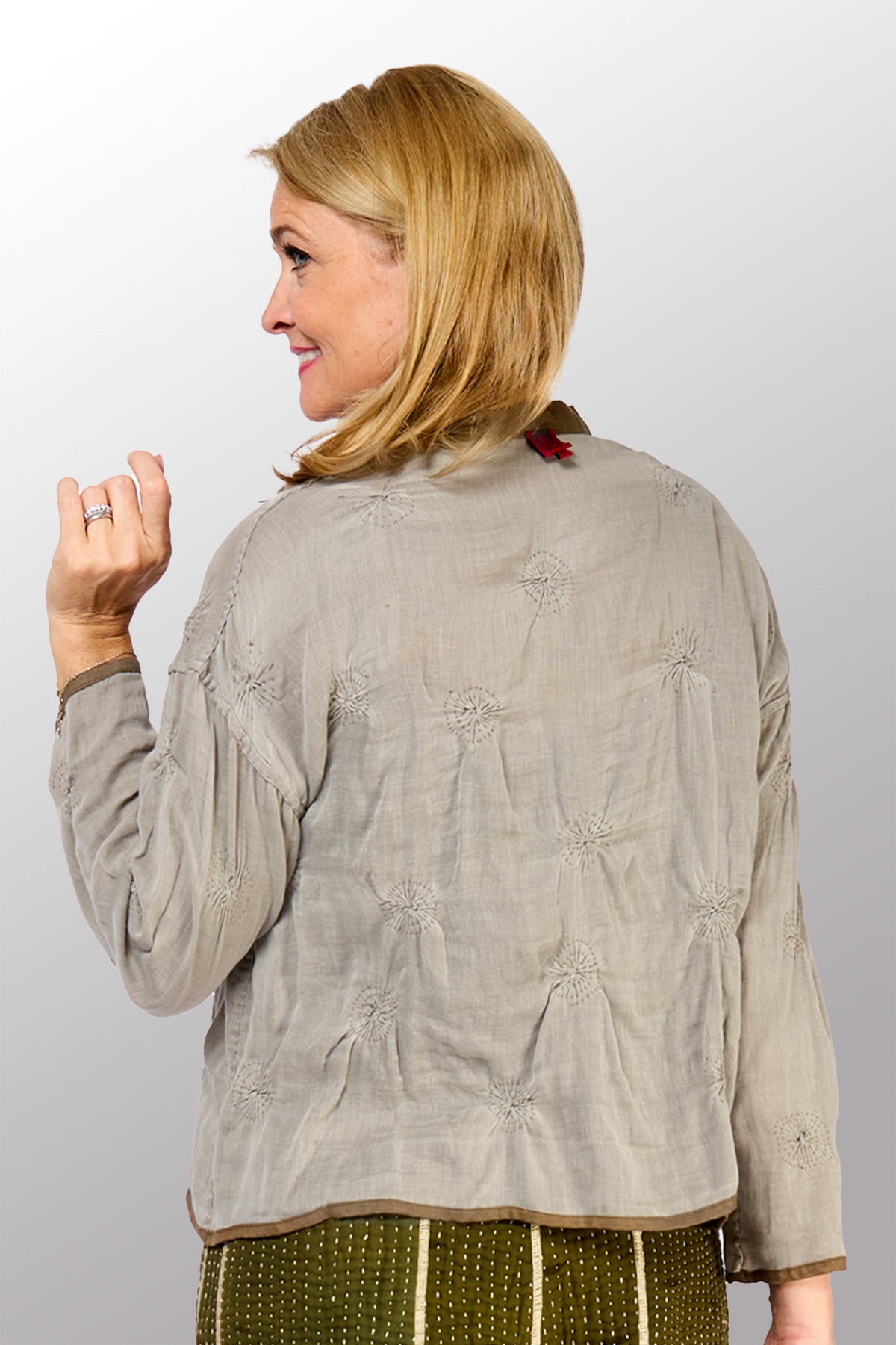 GAUZE SHIBORI GARMENT KANTHA SPIRAL KANTHA V-NECK LONG SLV. TOP