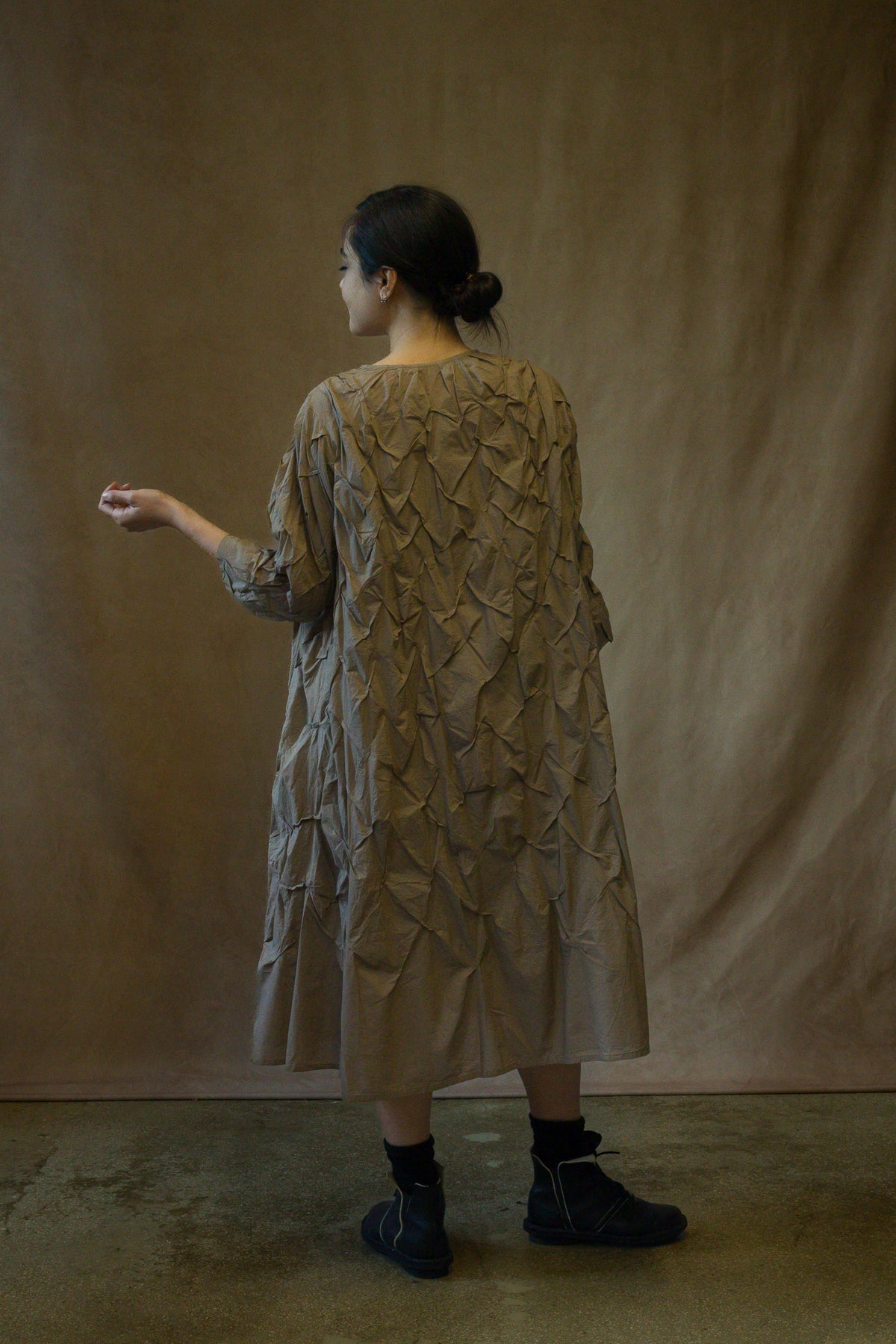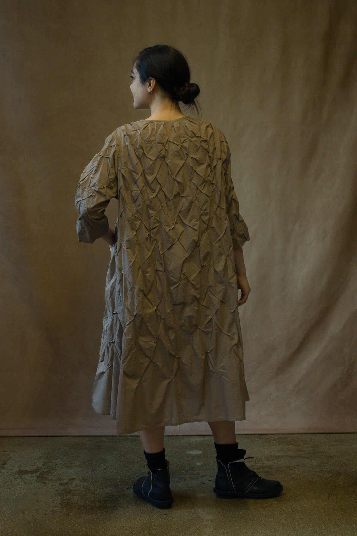 POLISHED COTTON WAVY TUCK A-LINE DRESS