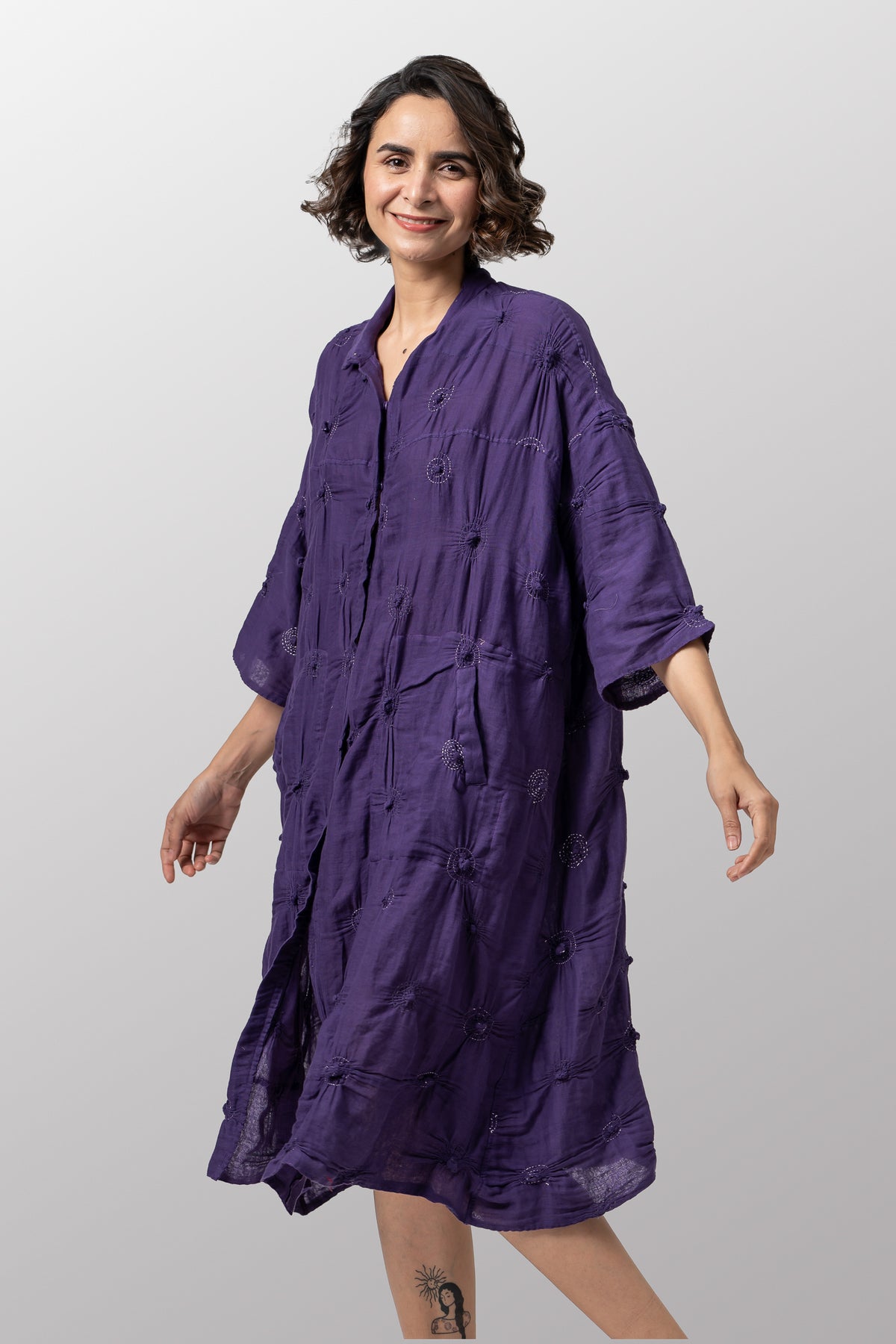 SPIRAL GARMENT KANTHA 3/4 SLV. SHIRT DRESS