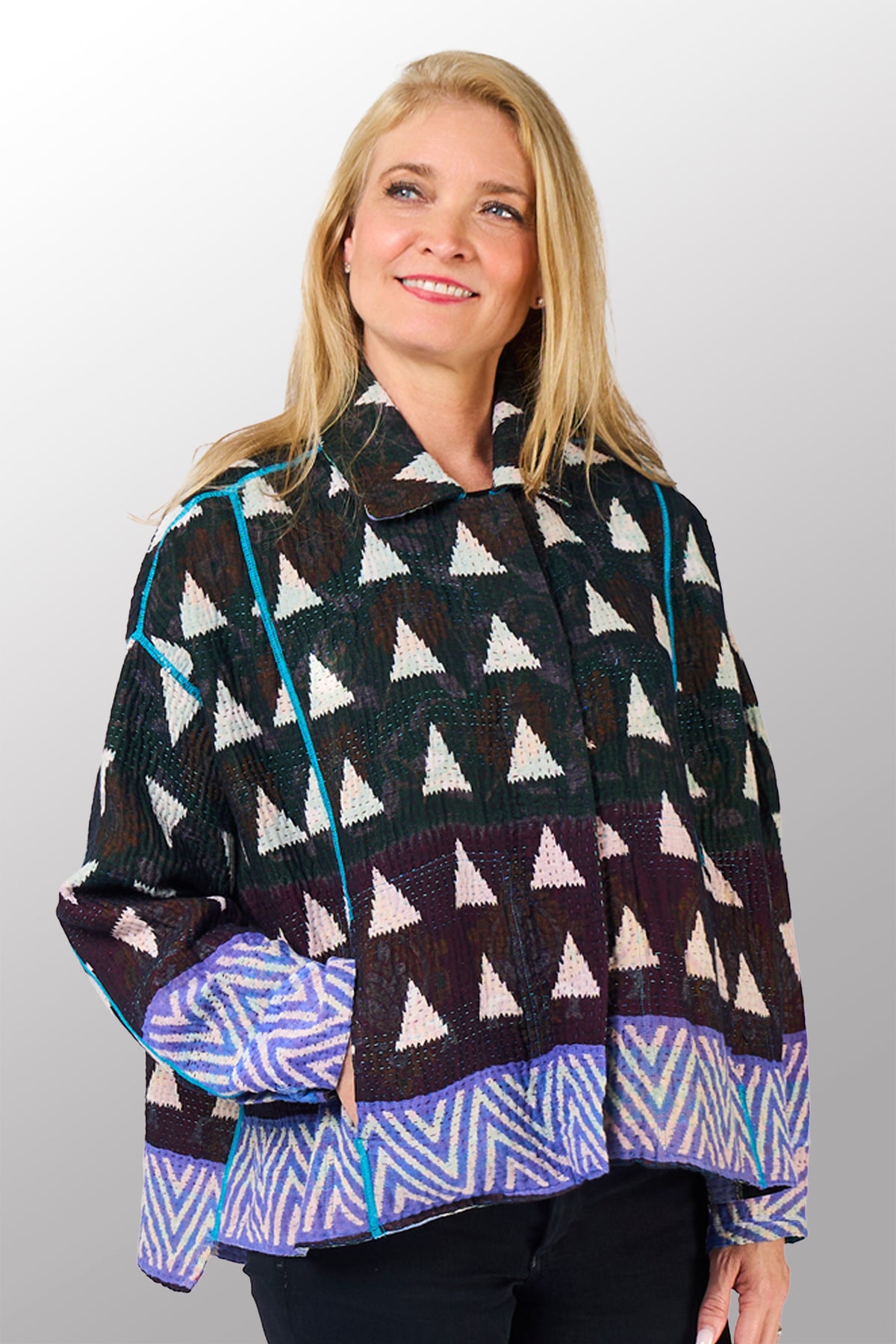 VINTAGE COTTON KANTHA CROPPED SHIRT JACKET
