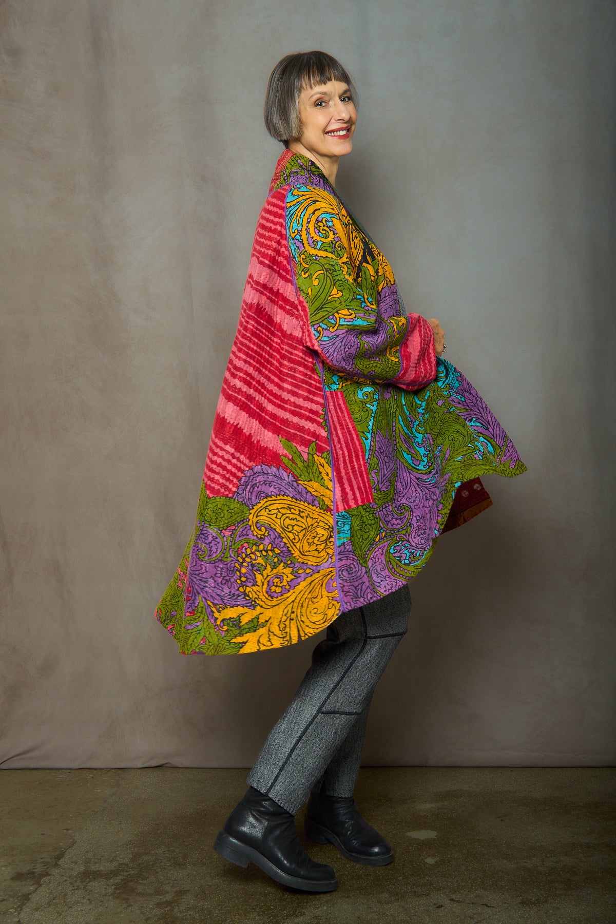 4 Layer Vintage Saris with Hand Stitches on Entire Garment - Reversible