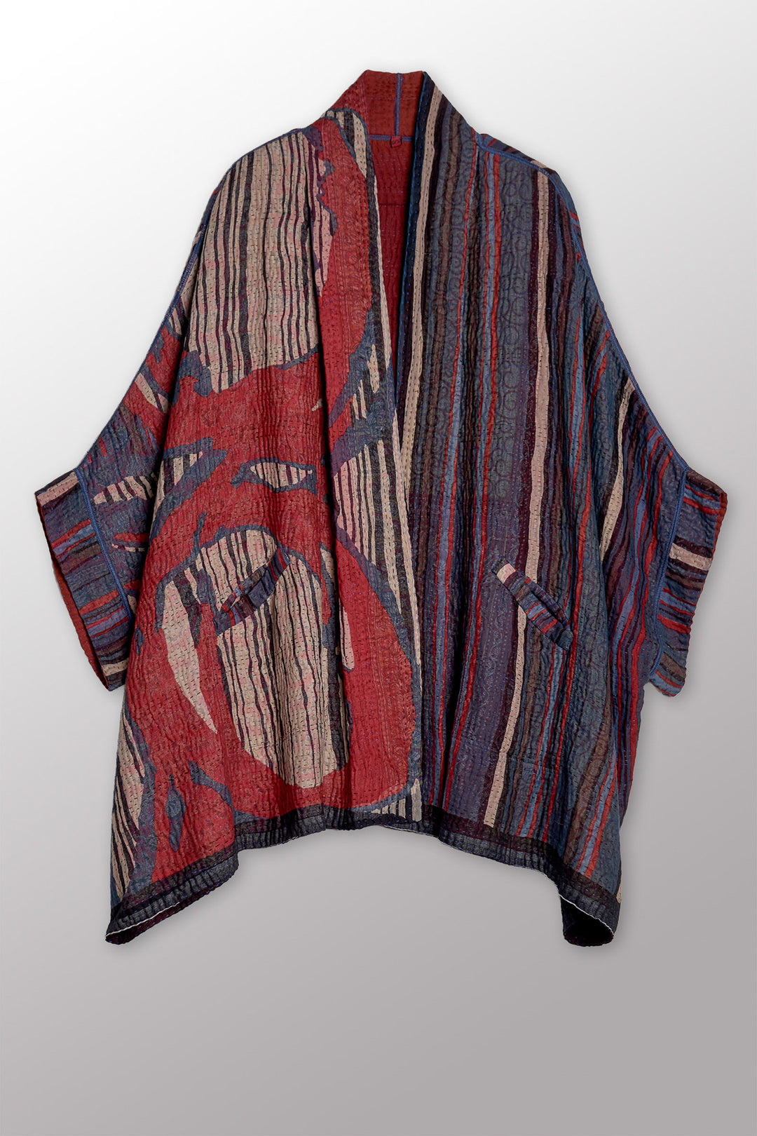 STRIPE AND BENDS KANTHA WRAP FLARE COAT