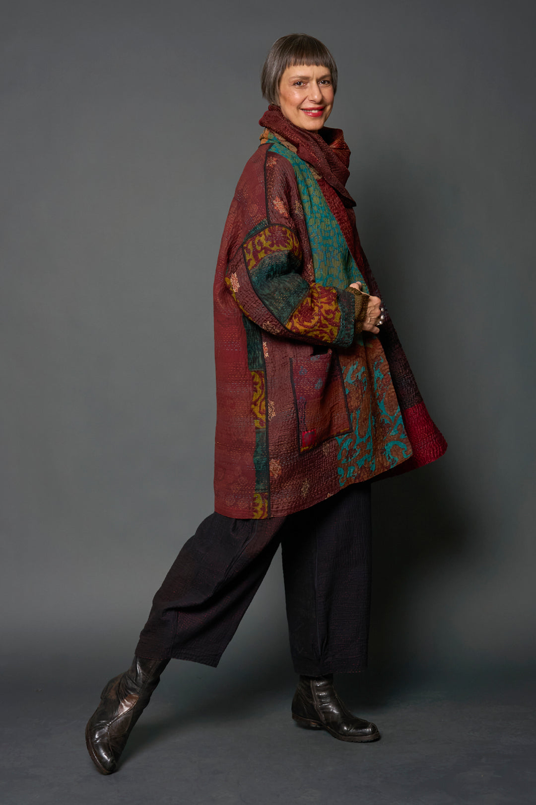 BBK SOLID KANTHA RAGLAN SLEEVE COAT