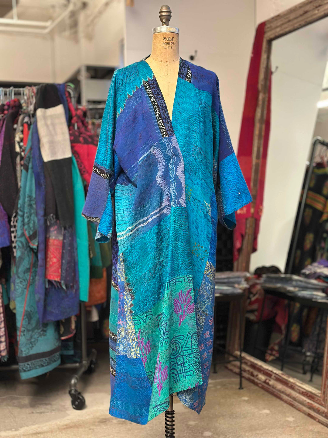 GEORGETTE VINTAGE SILK PATCH KANTHA KIMONO MAXI