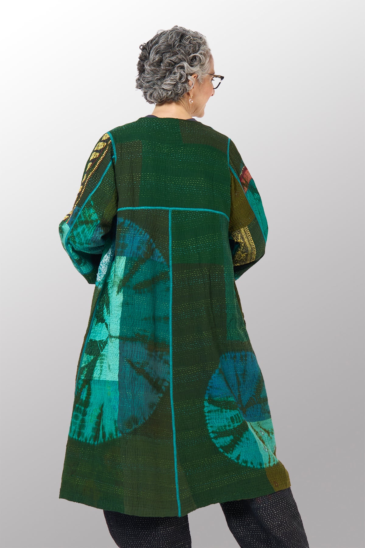 Use a delicate care detergent in cold water without soaking, as this might release some dye. Press and wash without rubbing. Rinse the Kantha garment without wringing.