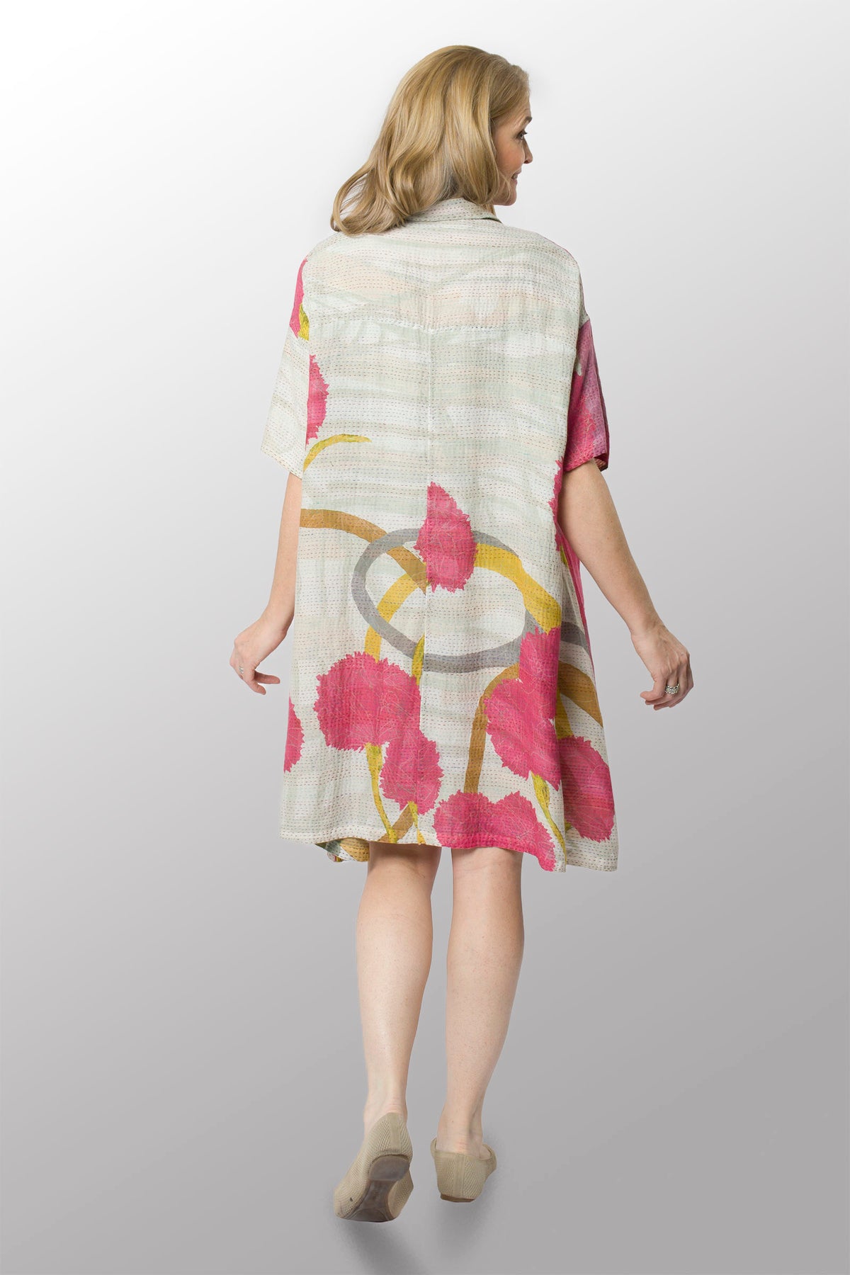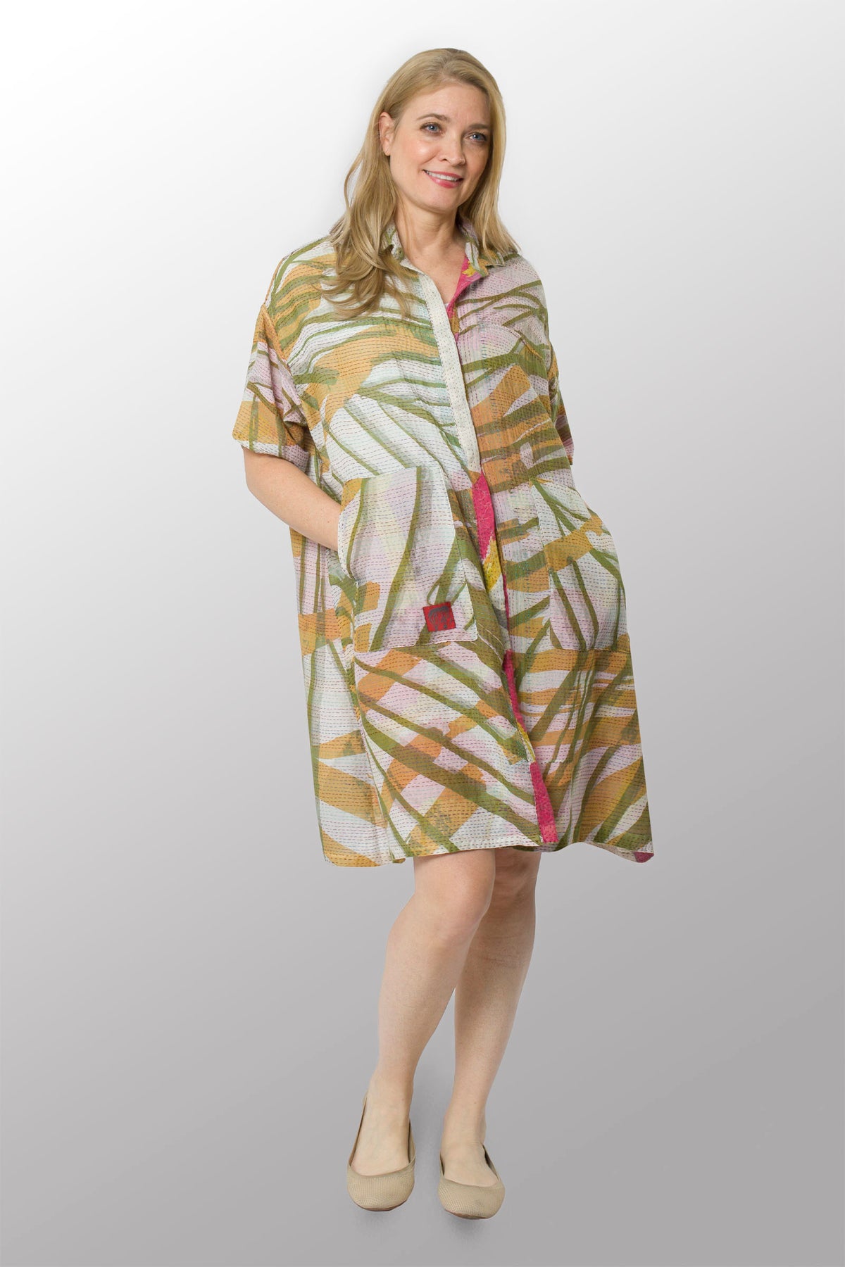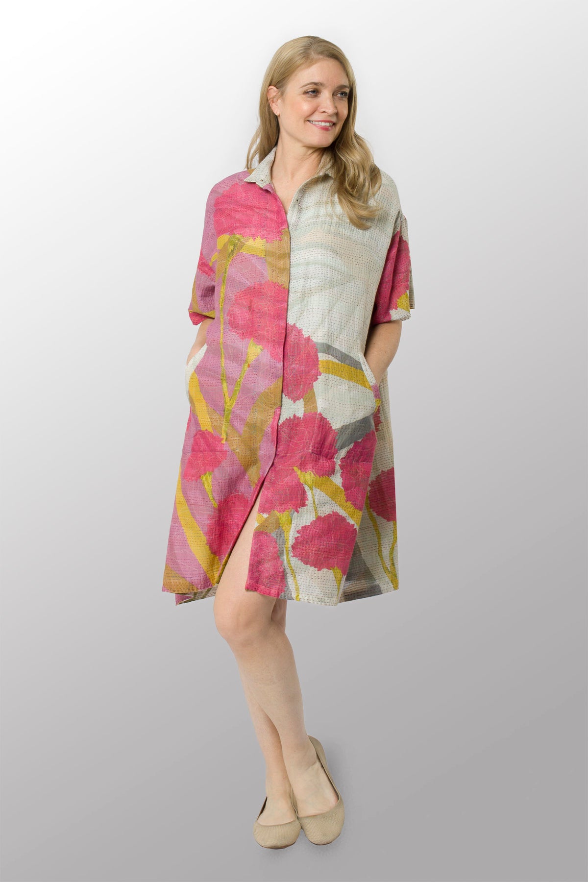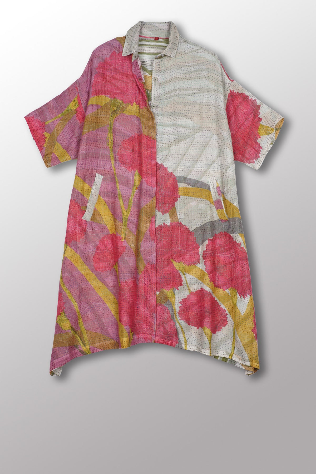 MARIGOLD PRINT KANTHA HALF SLV. SHIRT DRESS - mg2429-pik -