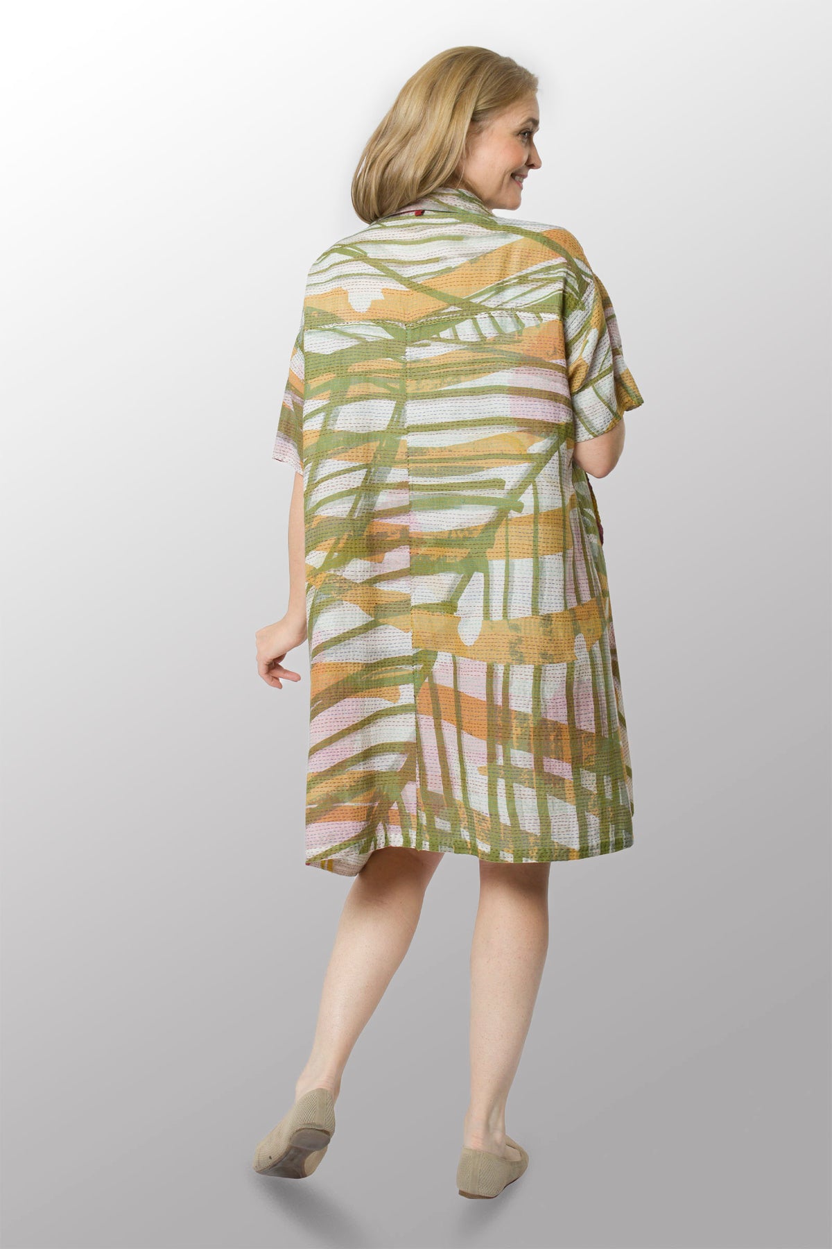 MARIGOLD PRINT KANTHA HALF SLV. SHIRT DRESS