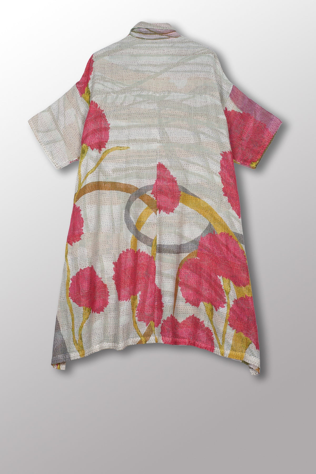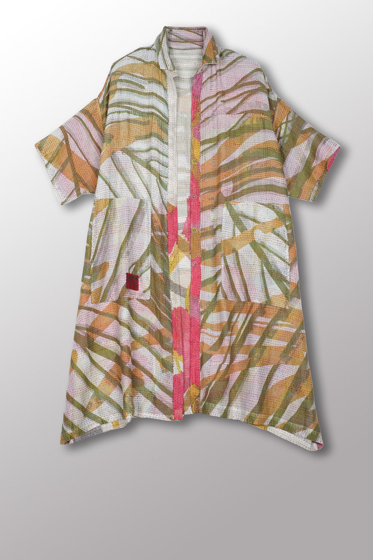 Use a delicate care detergent in cold water without soaking, as this might release some dye. Press and wash without rubbing. Rinse the Kantha garment without wringing.