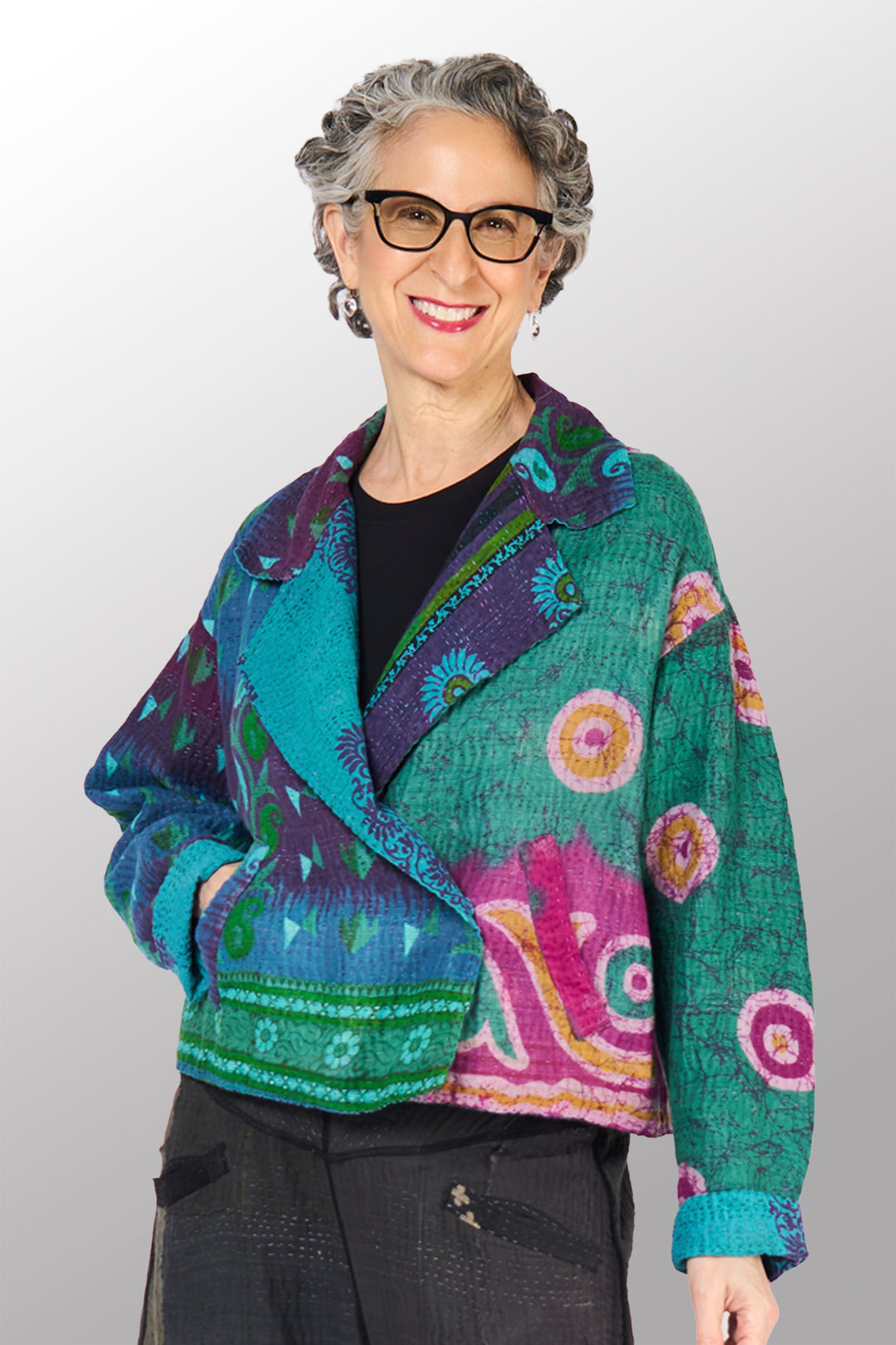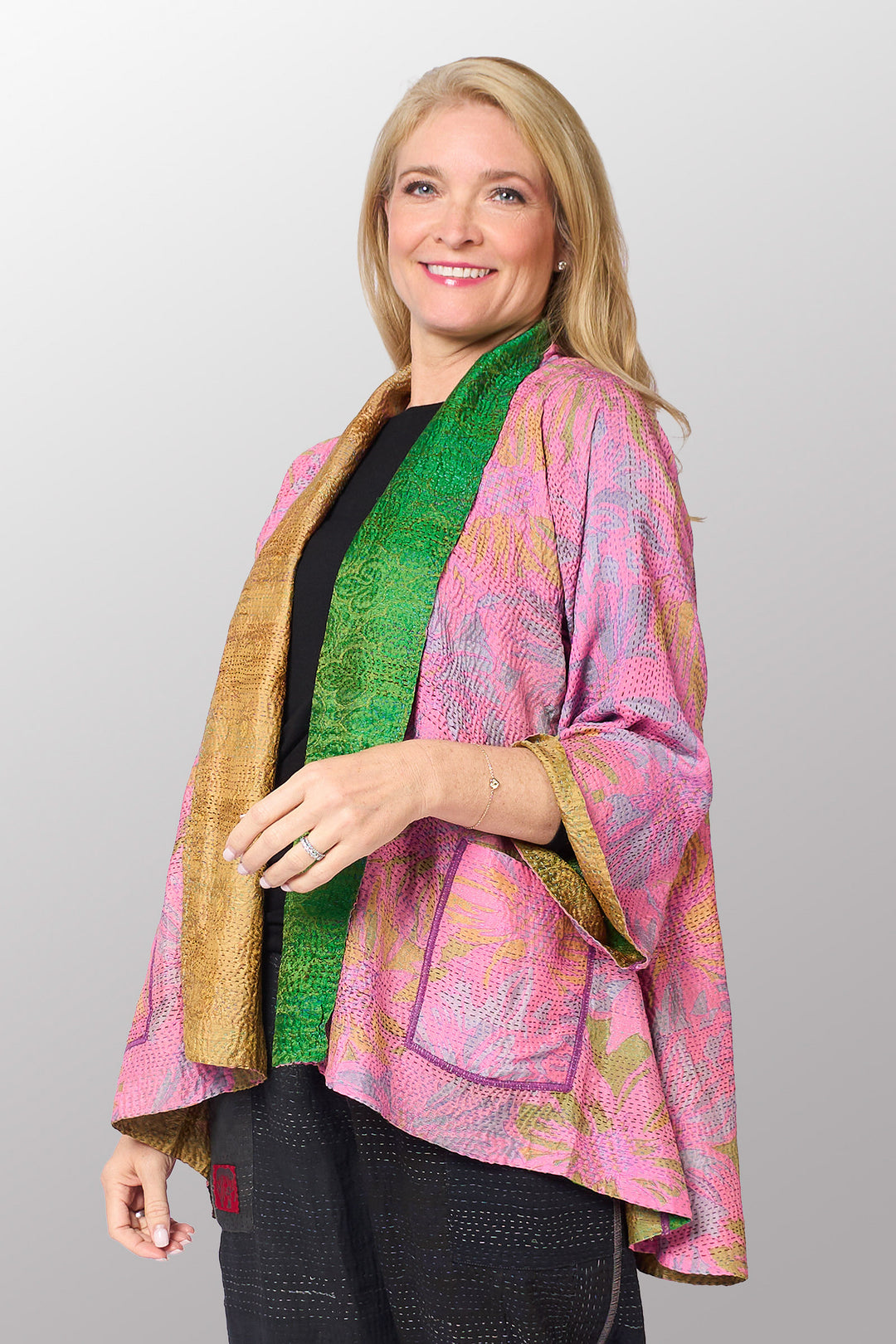 VINTAGE SILK KANTHA SHORT JKT