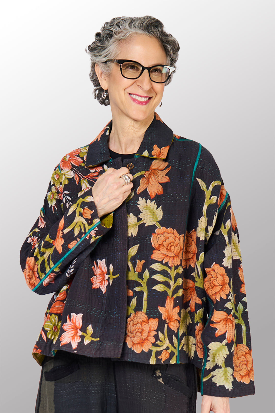 JACQUARD SILK KANTHA A-LINE JKT