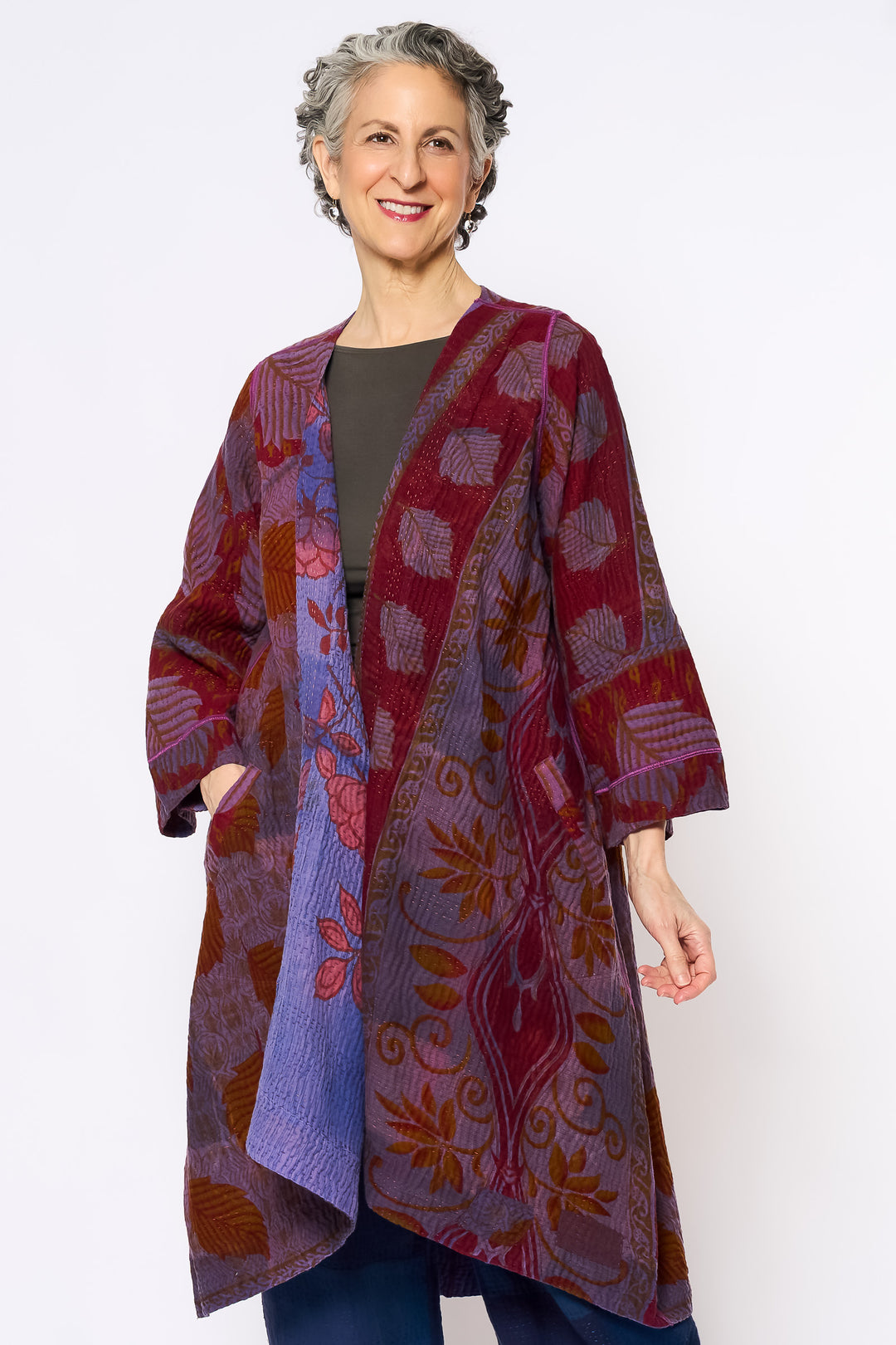 QUILTED OVERDYE COTTON KANTHA RAGLAN SLEEVE COAT