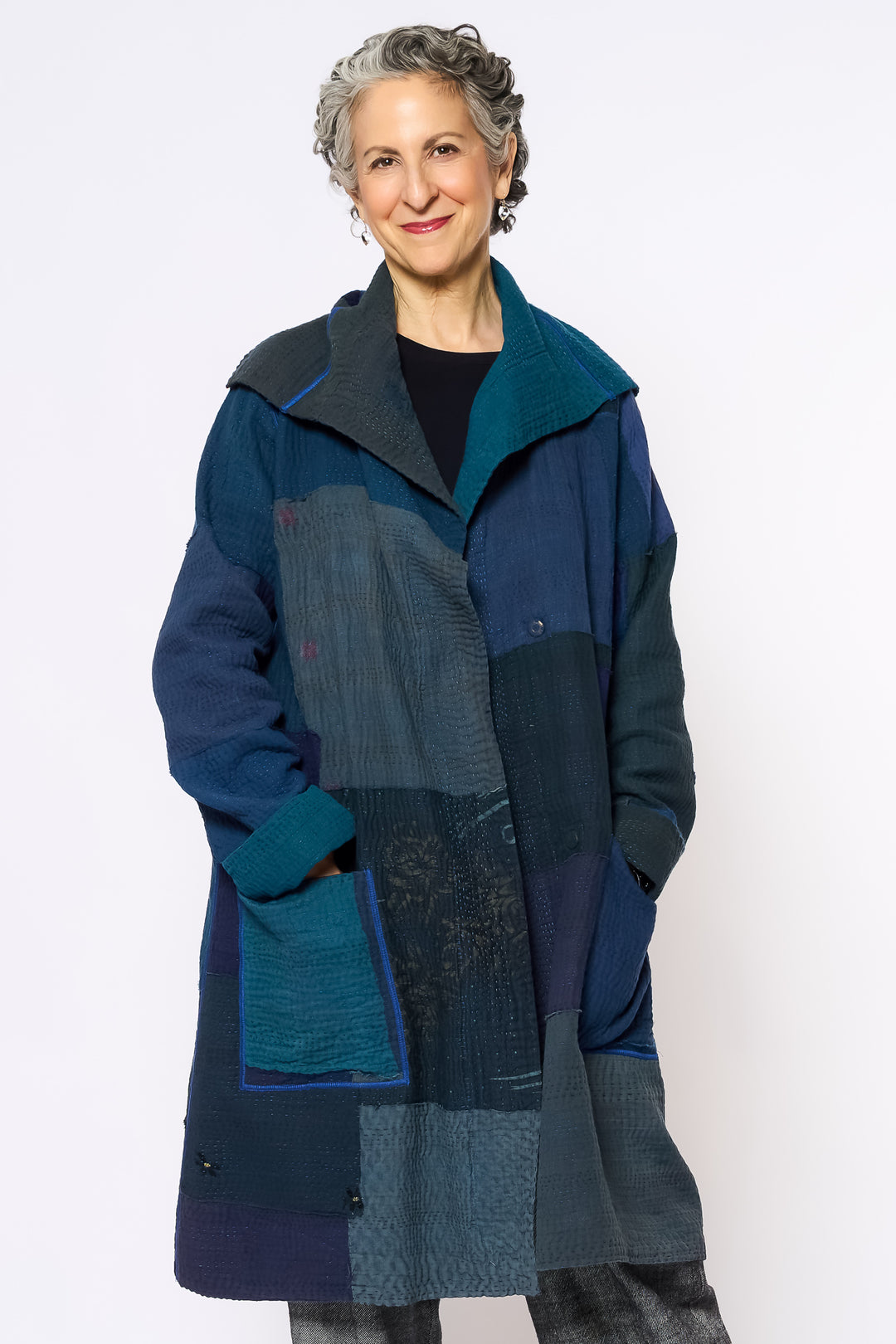 QUILTED OVERDYE COTTON KANTHA POCKET MEDIUM COAT