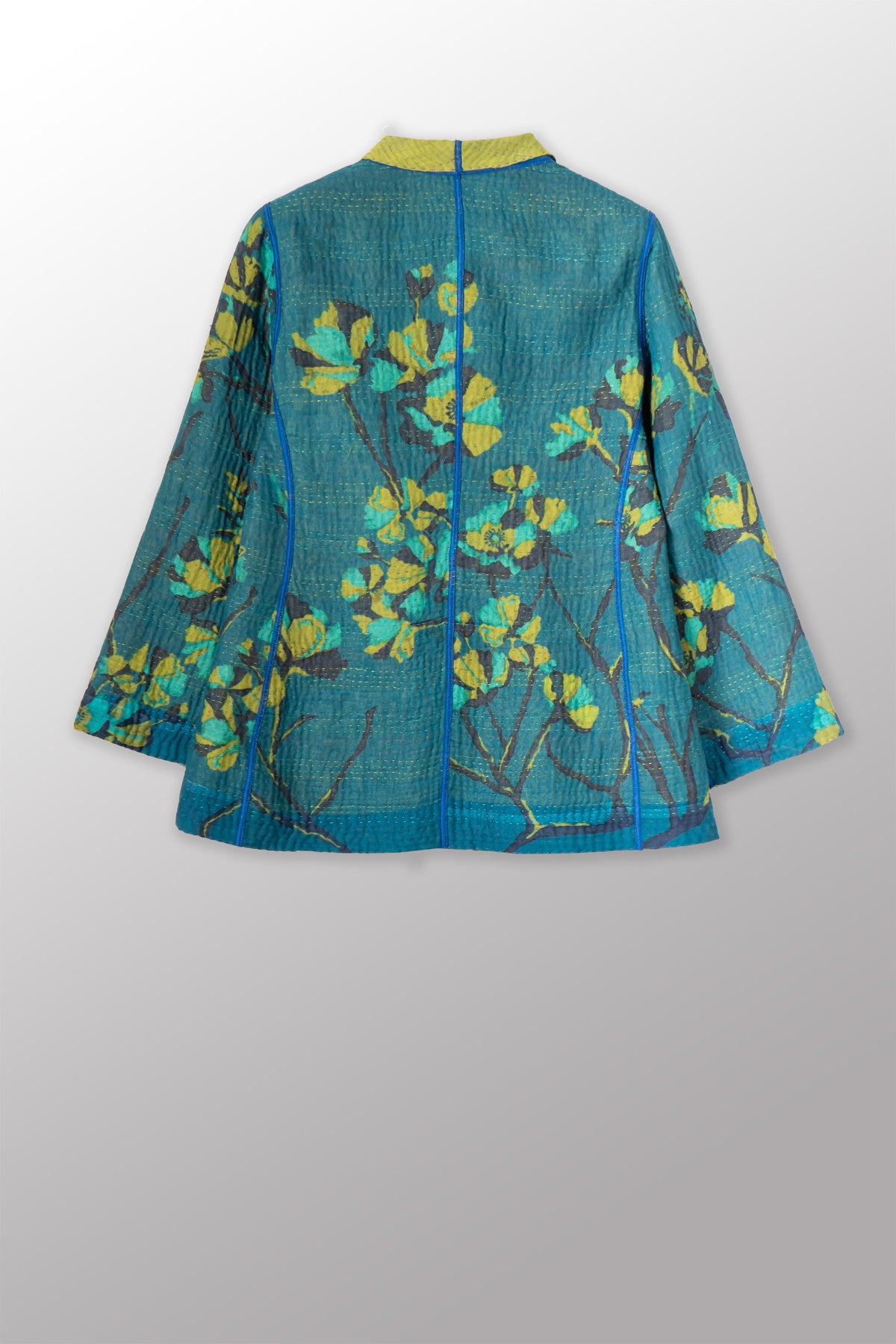 BLOOMING FLOWERS KANTHA SHORT JACKET - bf4007-blu -