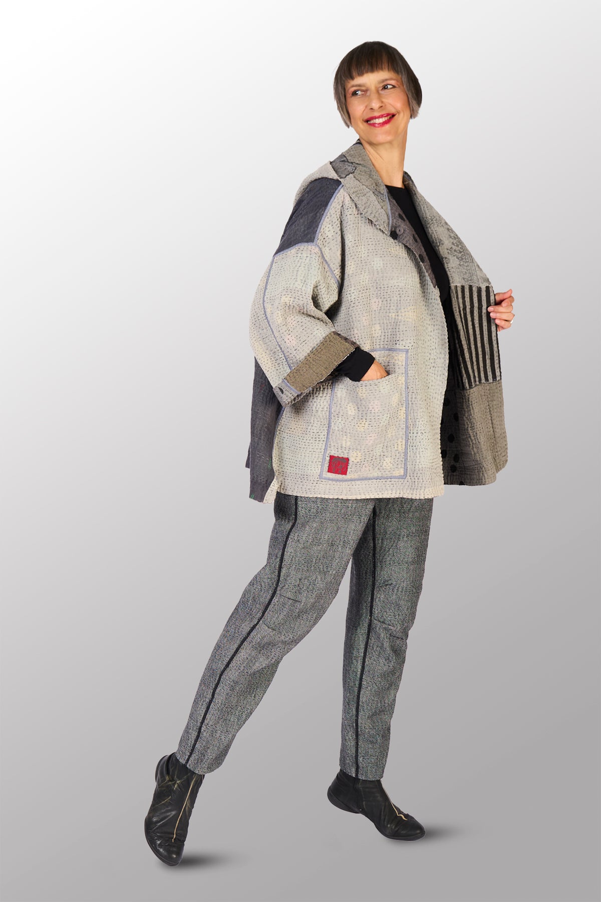 Use a delicate care detergent in cold water without soaking, as this might release some dye. Press and wash without rubbing. Rinse the Kantha garment without wringing.