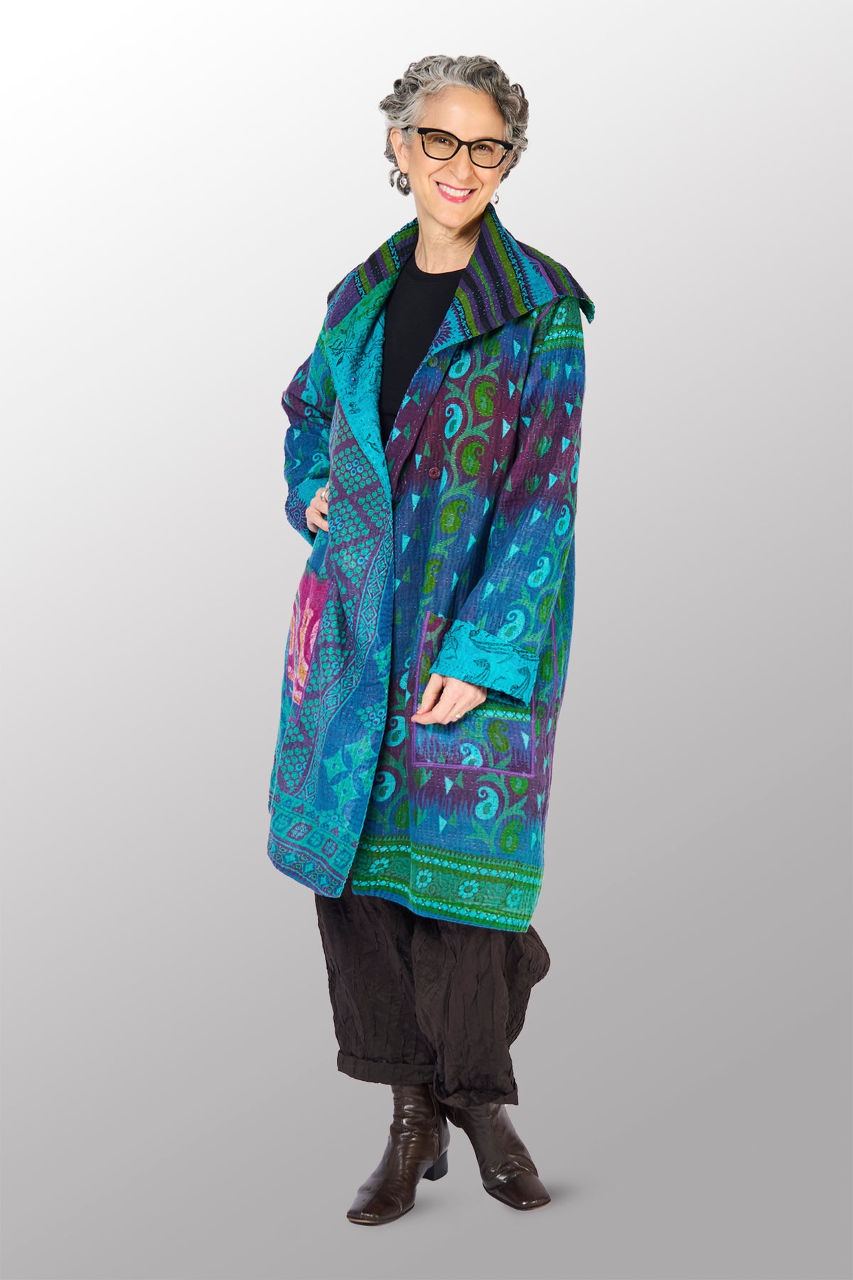 4 Layer Vintage Saris with Hand Stitches on Entire Garment - Reversible