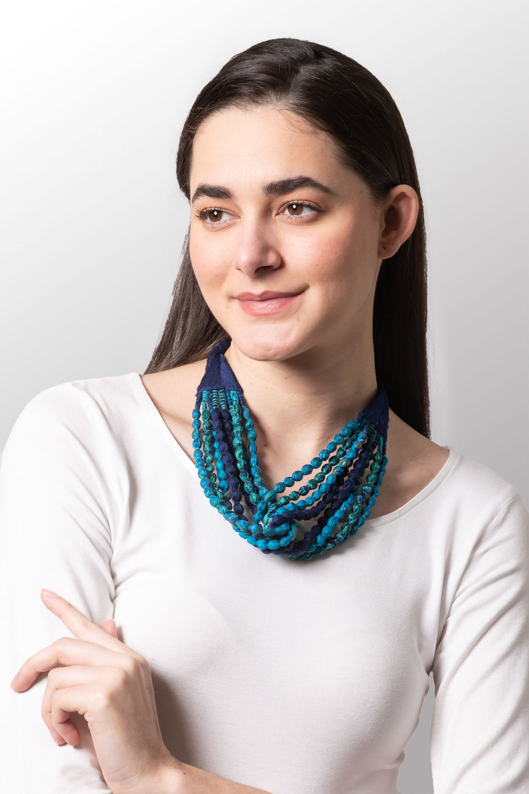 VINTAGE SILK KANTHA TIE-BEADS LONG NECKLACE