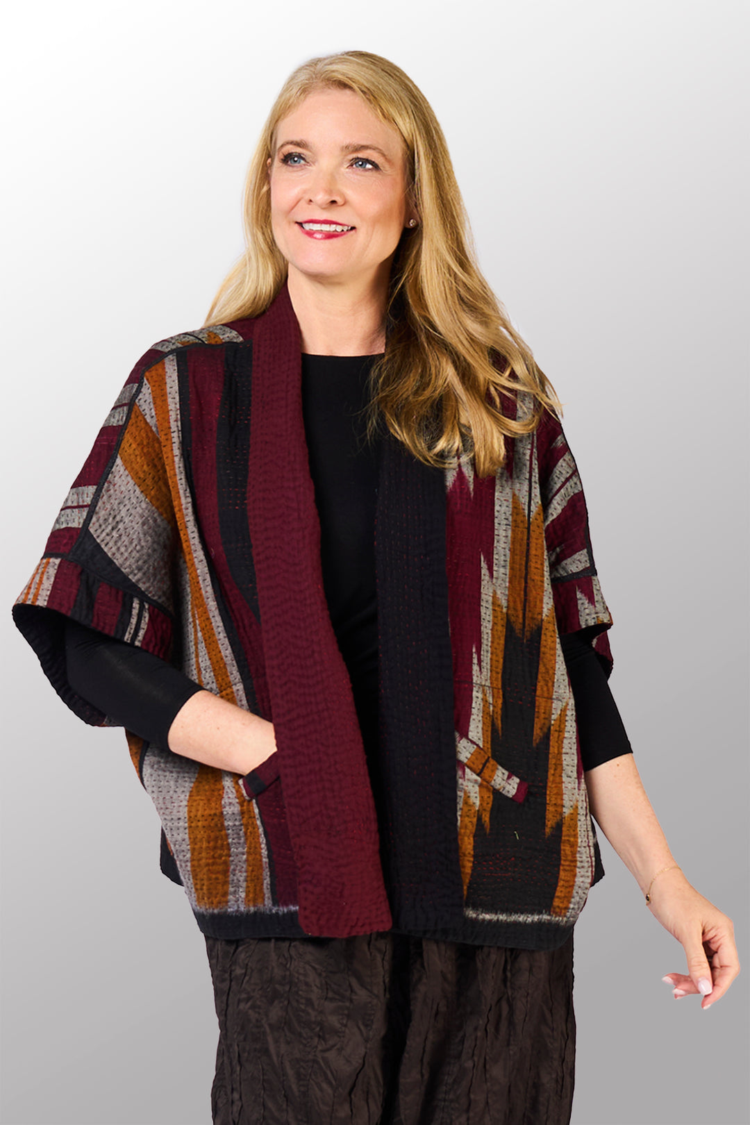 WOVEN HANDLOOM IKAT WITH OMBRE KANTHA MINI PONCHO