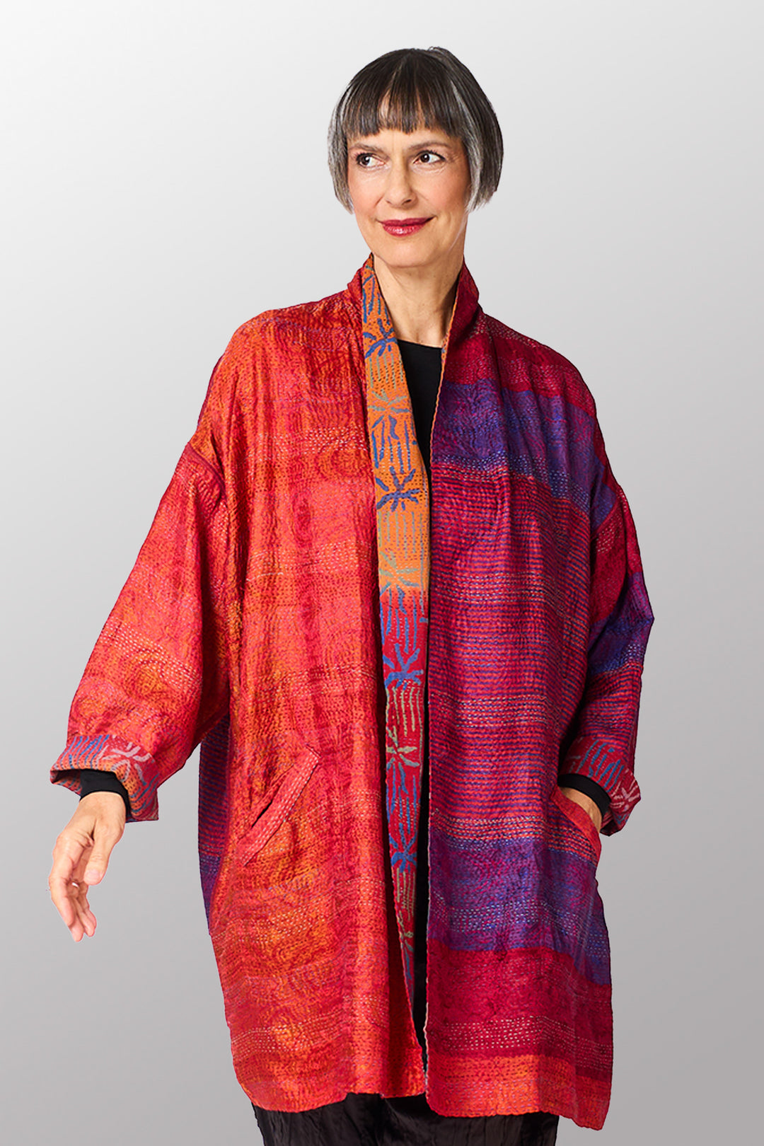 VINTAGE SILK GEORGETTE KANTHA A-LINE JKT