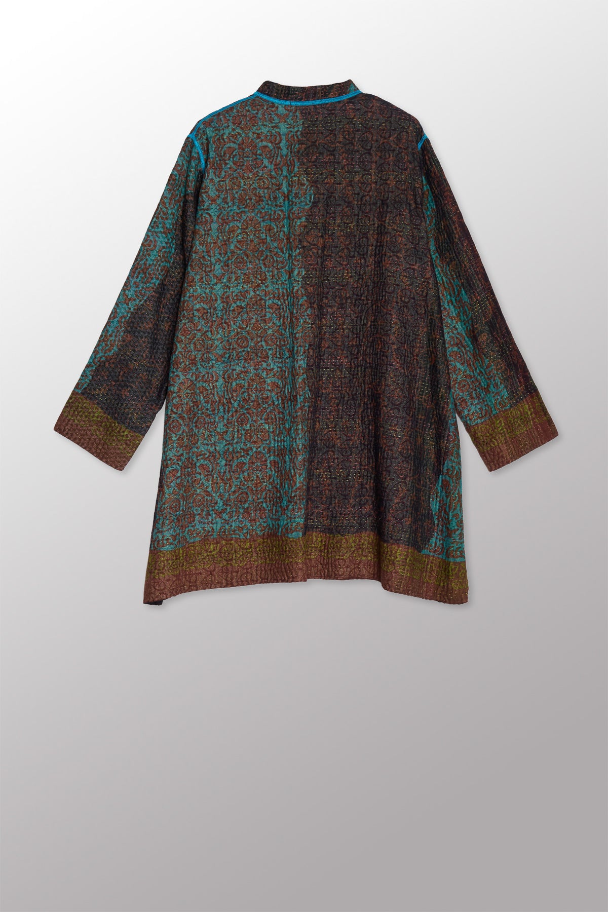 BAGH PRINT KANTHA KAFTAN JACKET MEDIUM - bg4089-brn -