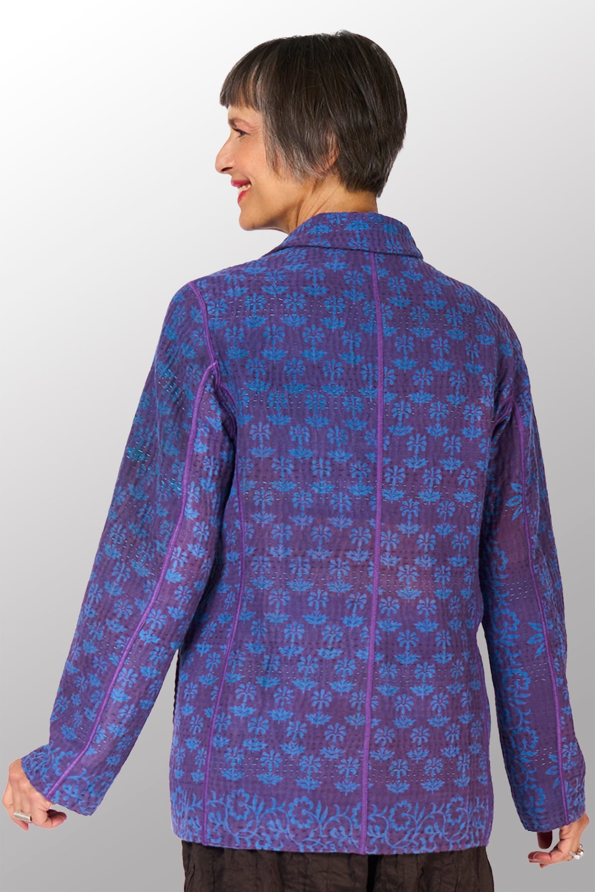 Use a delicate care detergent in cold water without soaking, as this might release some dye. Press and wash without rubbing. Rinse the Kantha garment without wringing.