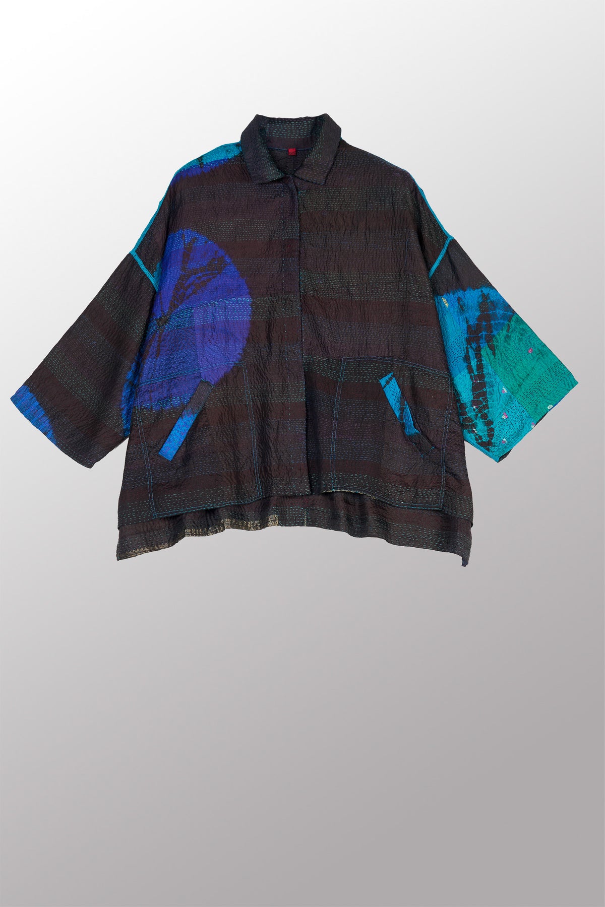 Use a delicate care detergent in cold water without soaking, as this might release some dye. Press and wash without rubbing. Rinse the Kantha garment without wringing.
