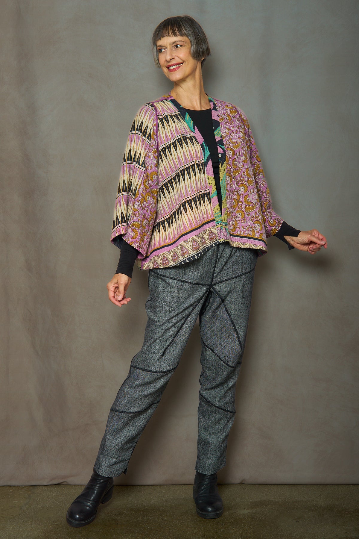 4 Layer Vintage Saris with Hand Stitches on Entire Garment - Reversible