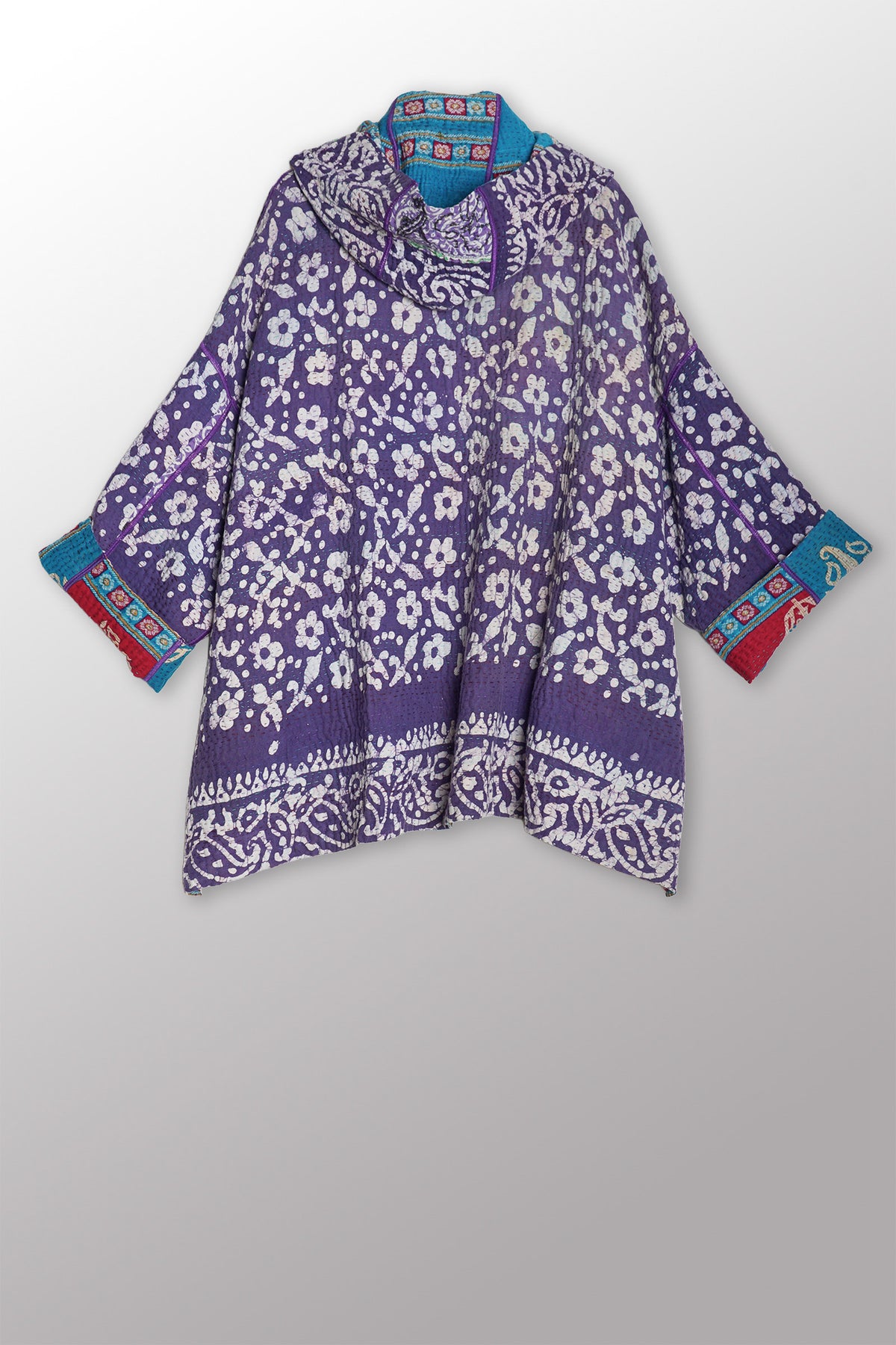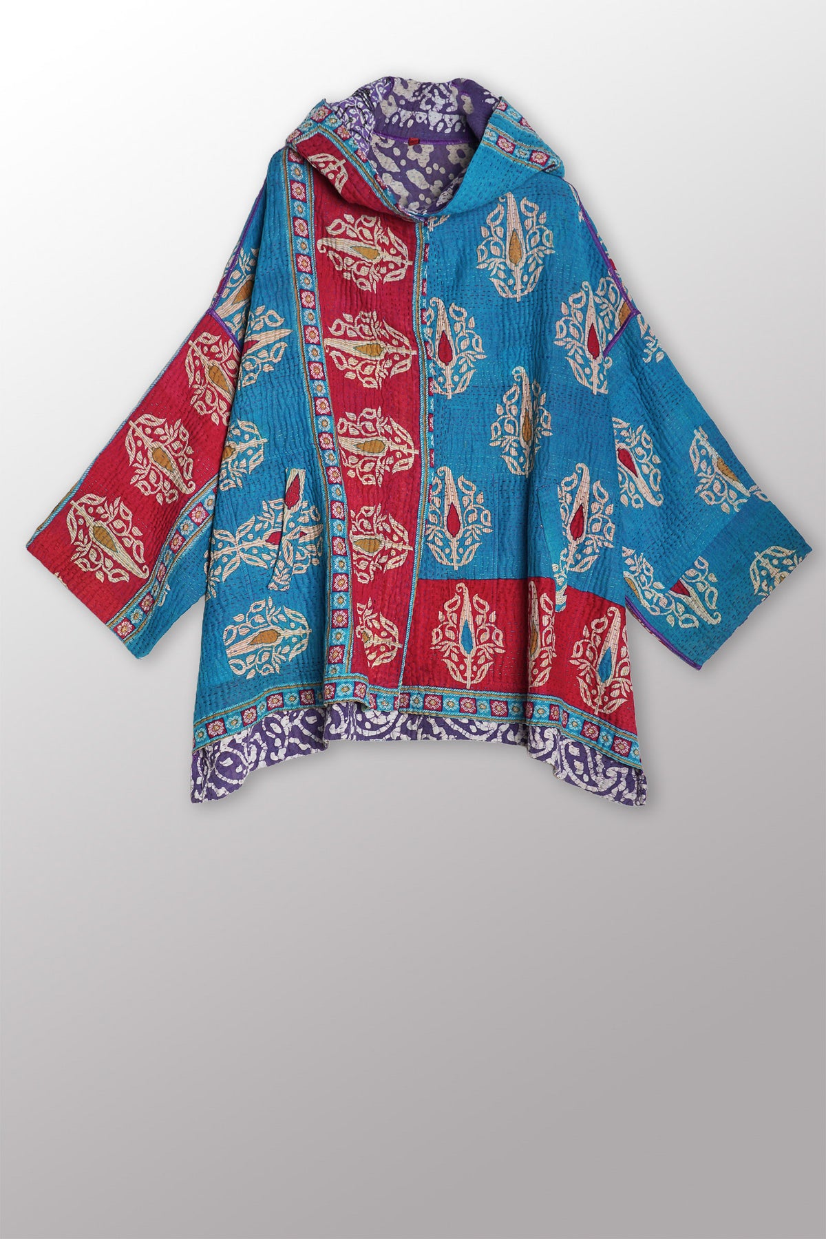 VINTAGE COTTON KANTHA HOODIE PONCHO
