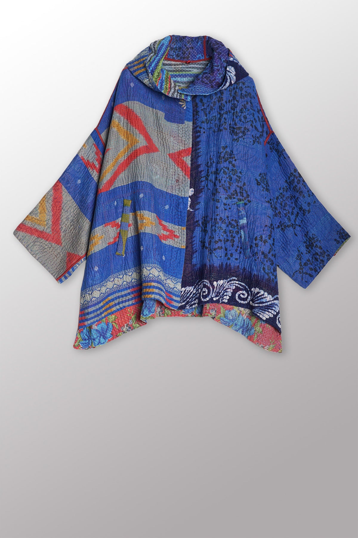 VINTAGE COTTON KANTHA HOODIE PONCHO