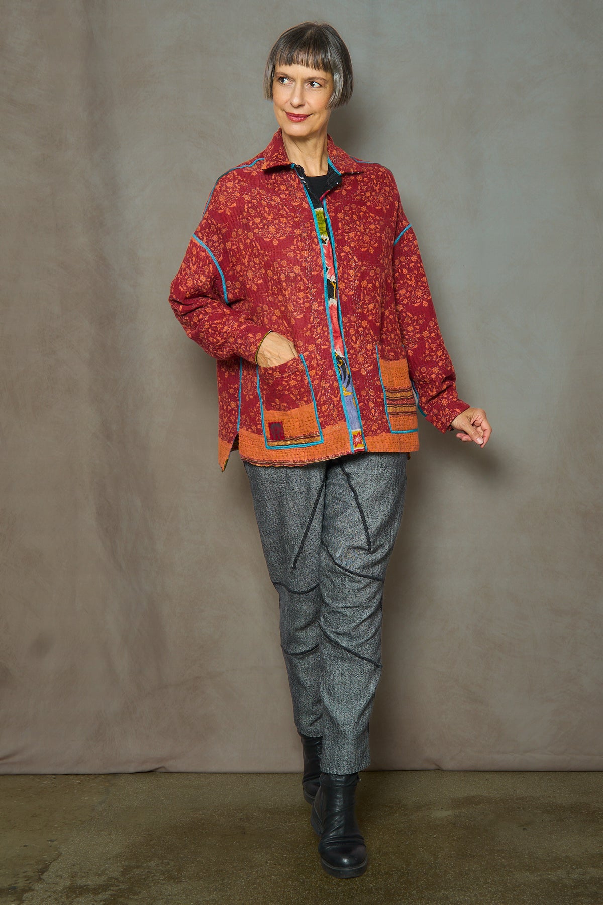 VINTAGE COTTON KANTHA RELAXED SHIRT JACKET