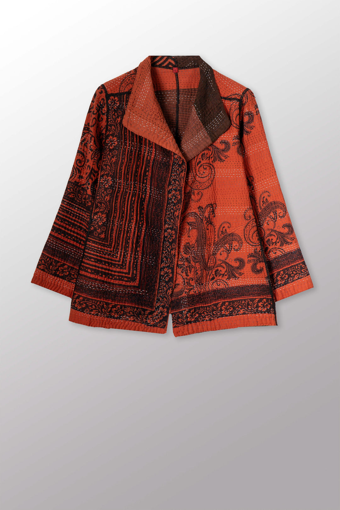 VINTAGE JACQUARD CLAMP DYE WITH PRINTED SILK KANTHA PEA COAT