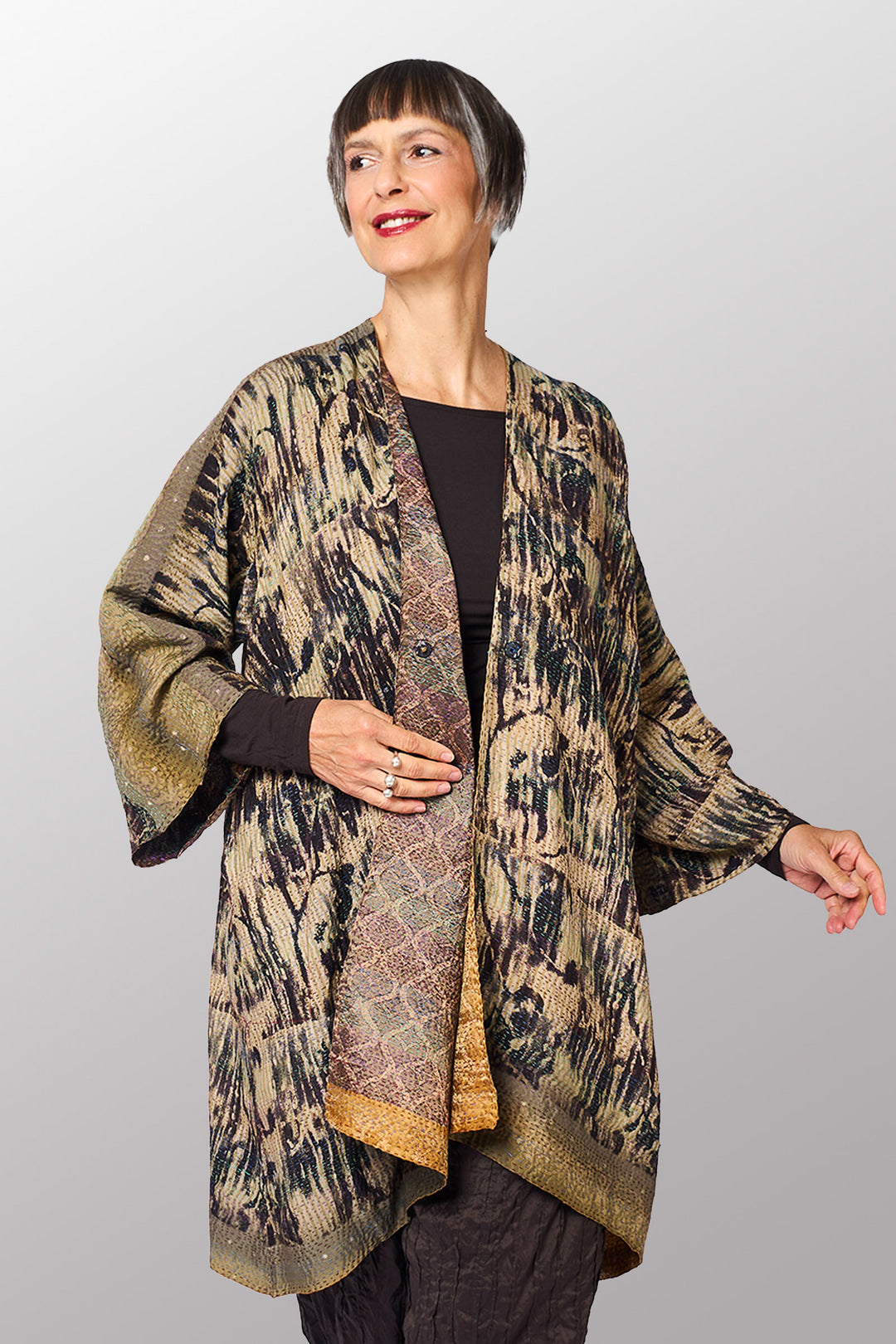 VINTAGE SILK KANTHA POCKET MEDIUM COAT