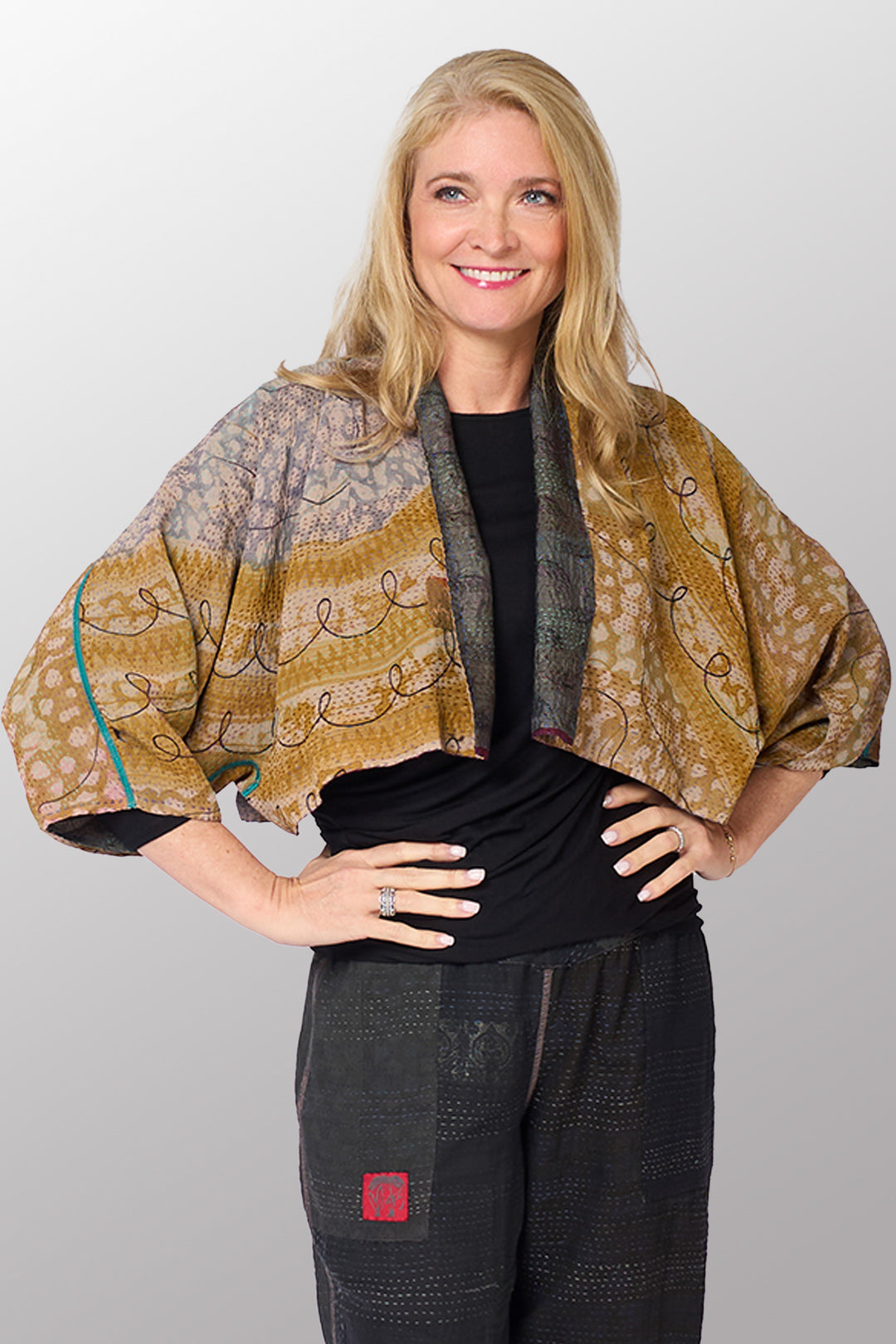 GEORGETTE JACQUARD VINTAGE SILK PATCH KANTHA SHORT JACKET
