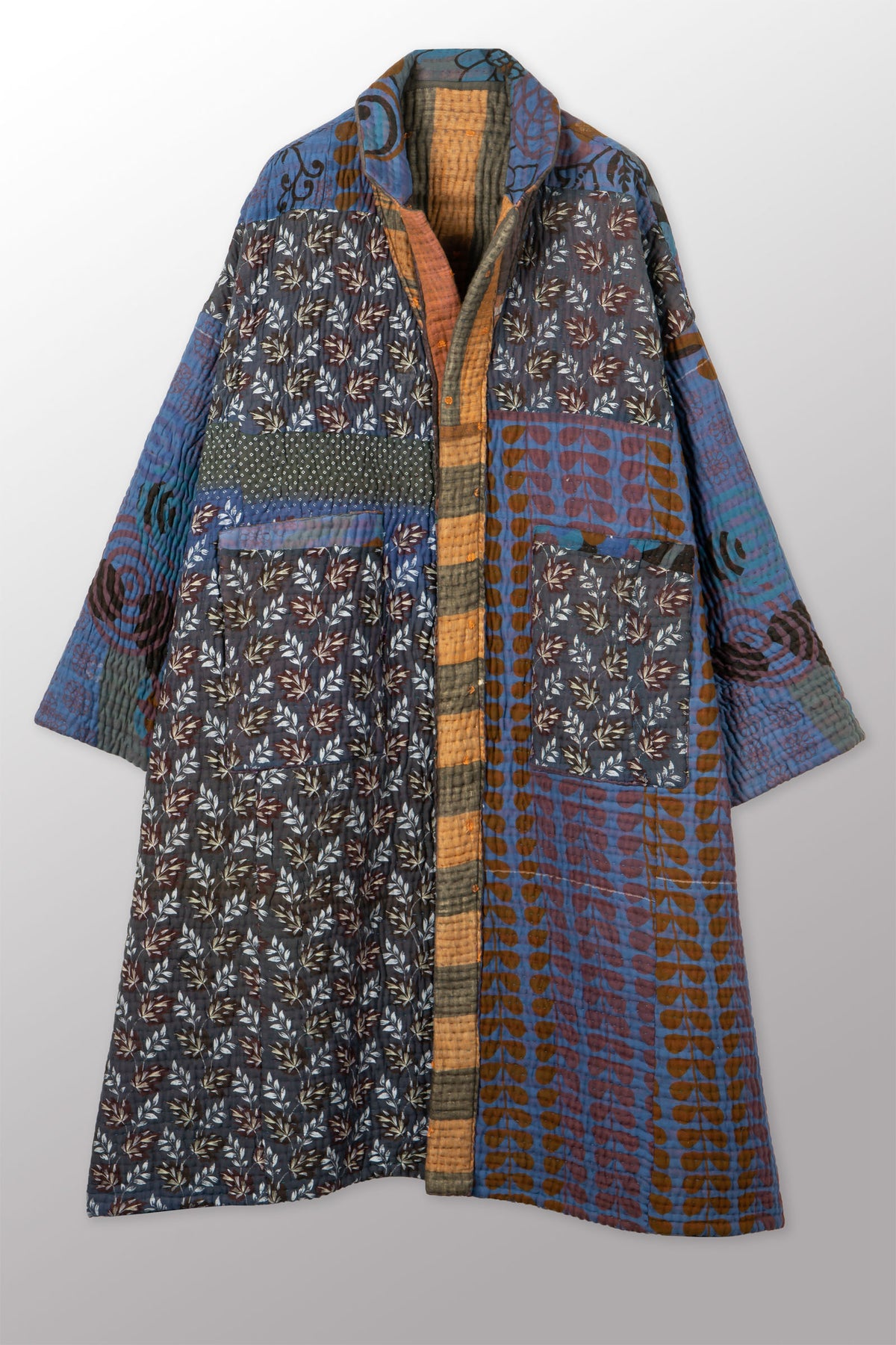QUILTED OVERDYE COTTON KANTHA NEW OVERSIZED COAT - oq5342-cblu005a -