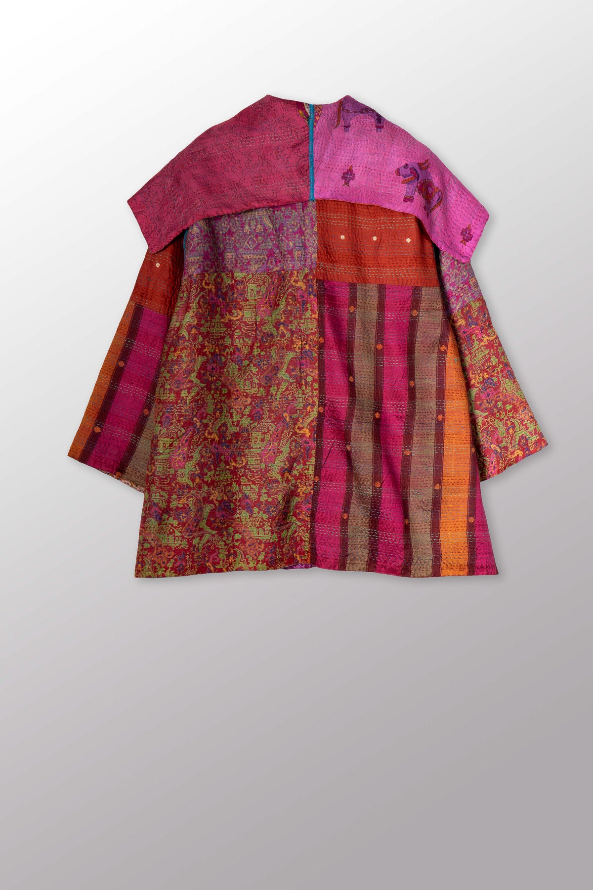 VINTAGE SILK KANTHA FLARE JKT - sv2010-0057a -