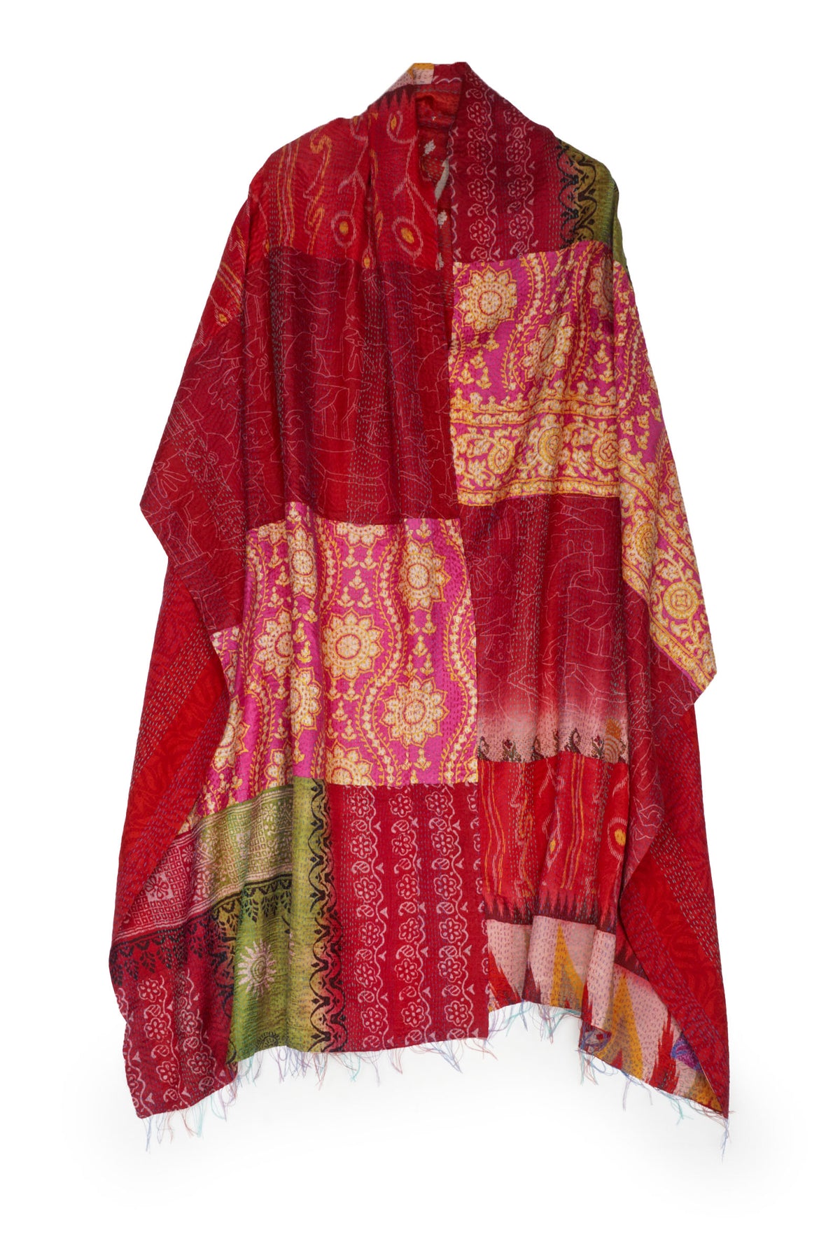 VINTAGE SILK KANTHA SHAWL MEDIUM - sv2802-red -