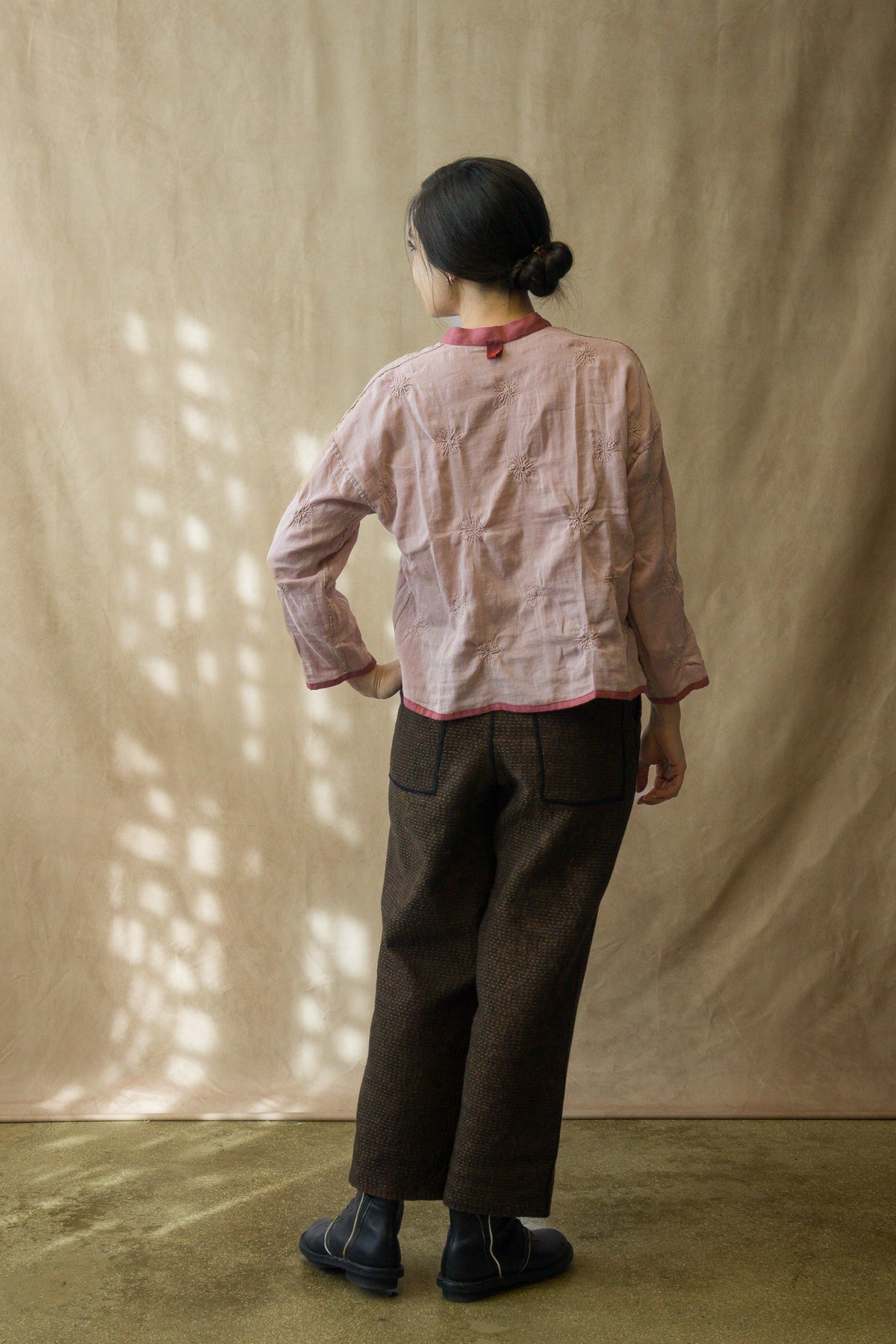GAUZE SHIBORI GARMENT KANTHA SPIRAL KANTHA V-NECK LONG SLV. TOP