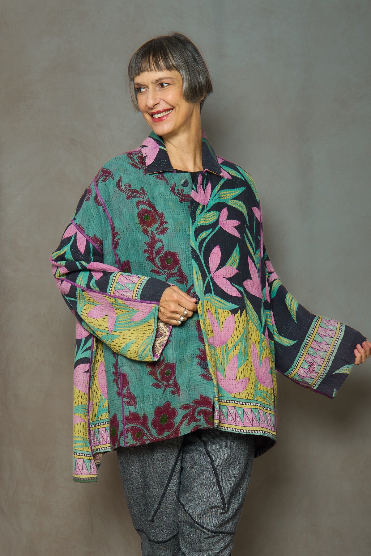 VINTAGE COTTON KANTHA OVERSIZED MINI COAT